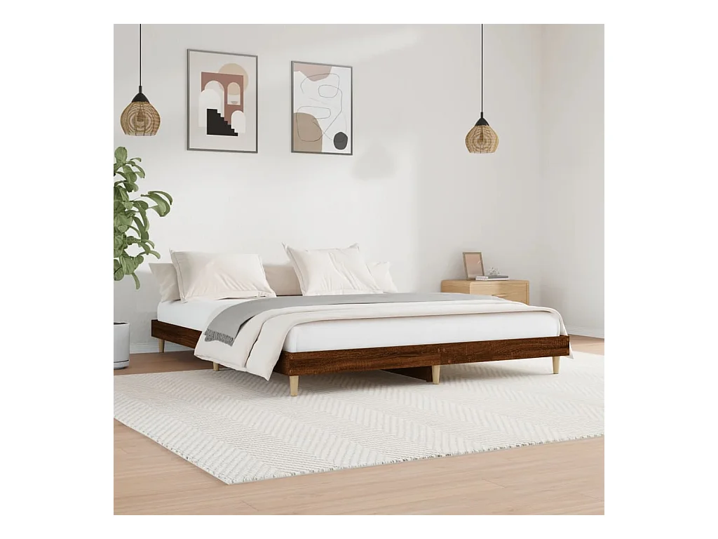 Estructura de cama sin colchón roble ahumado 200x200 cm madera de ingeniería