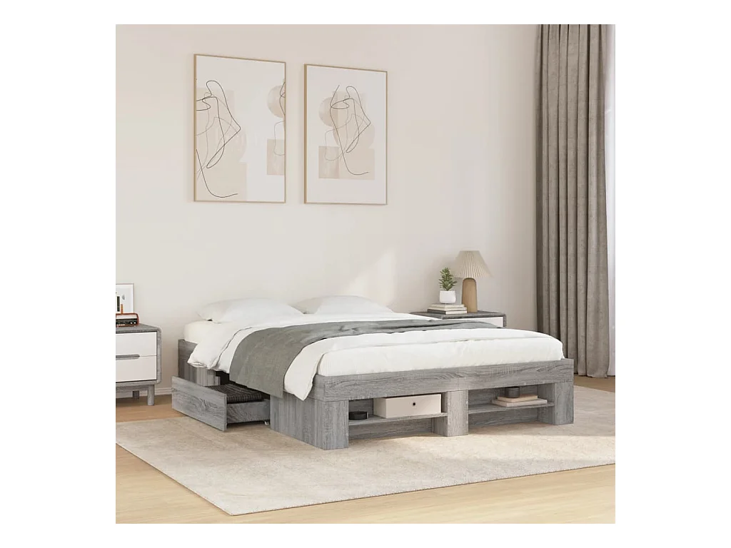 Estructura de cama sin colchón sonoma gris 120x200cm madera de ingeniería