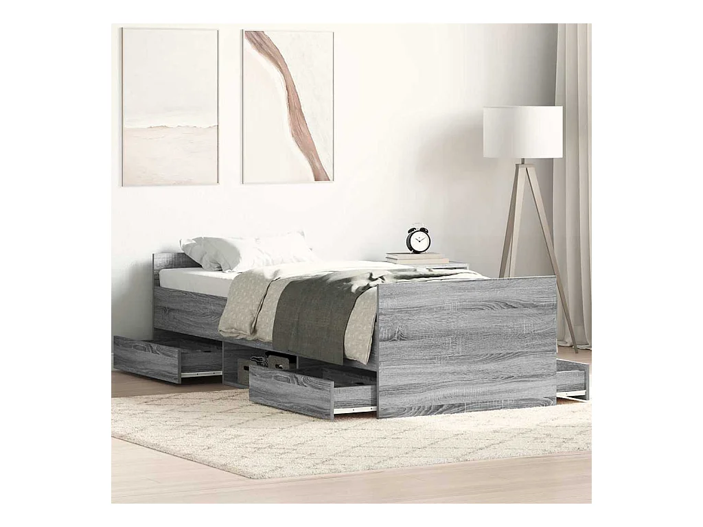 Estructura de cama con cajones sin colchón Sonoma gris 90x200 cm