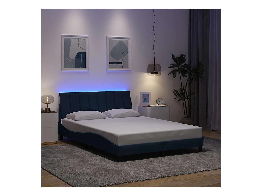 Estructura de cama sin colchón tela azul 120x200 cm