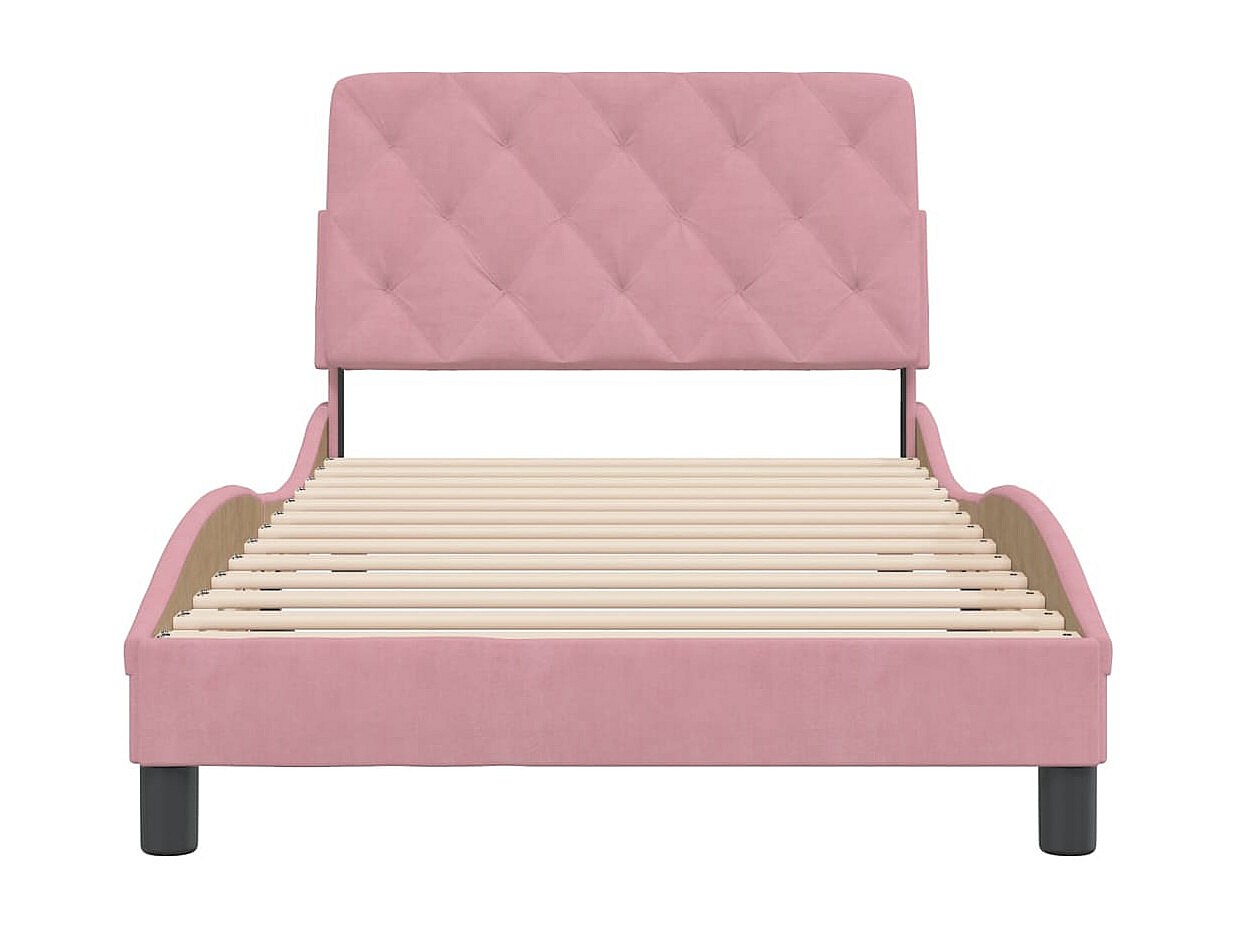 Cama individual- 100x200 cm con cabecero de terciopelo rosa ES223329