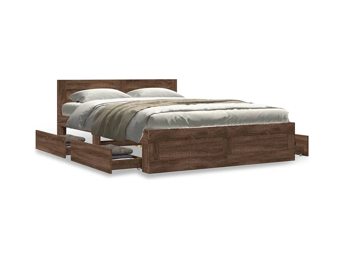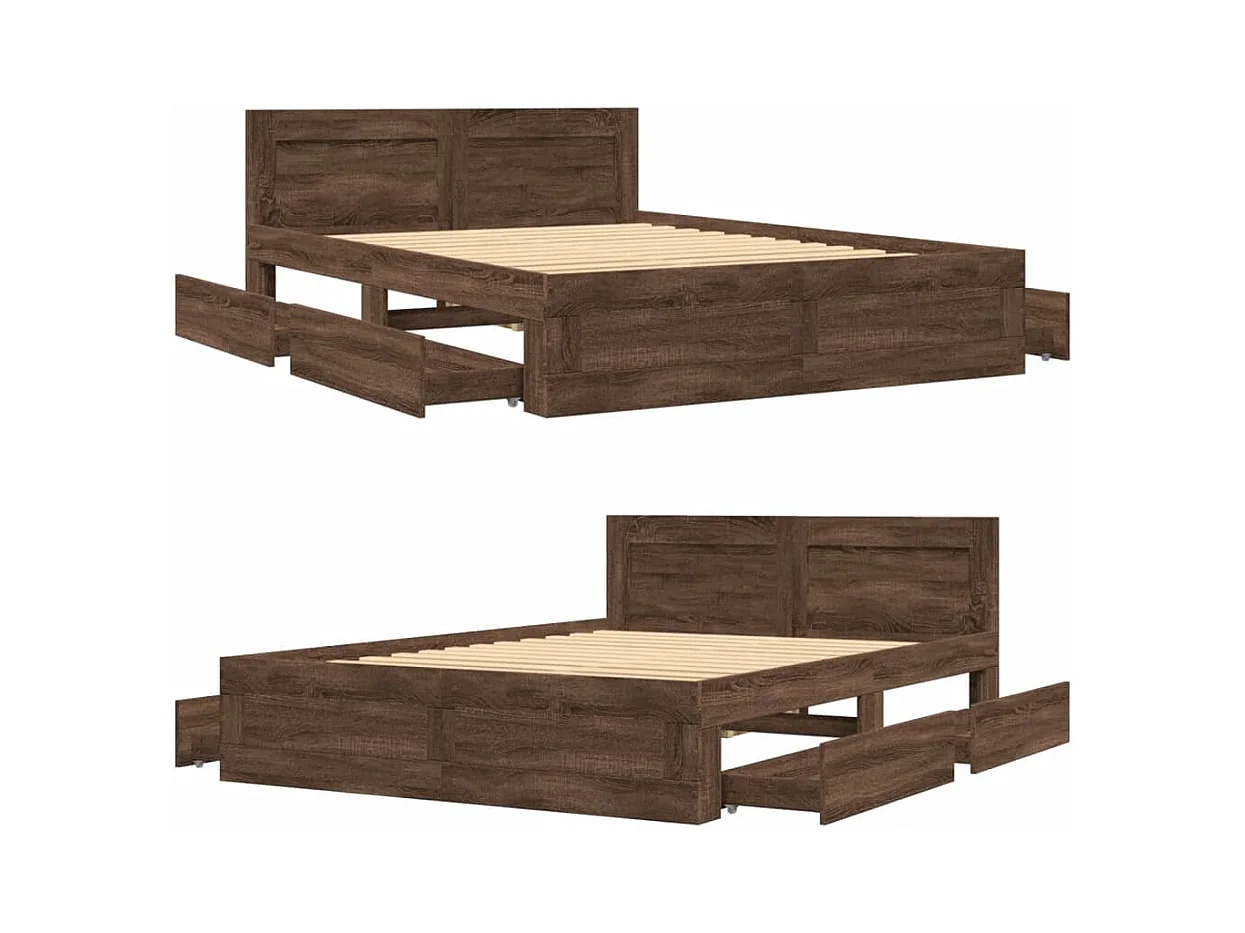 Estructura de cama con cajones sin colchón roble ahumado 120x200 cm