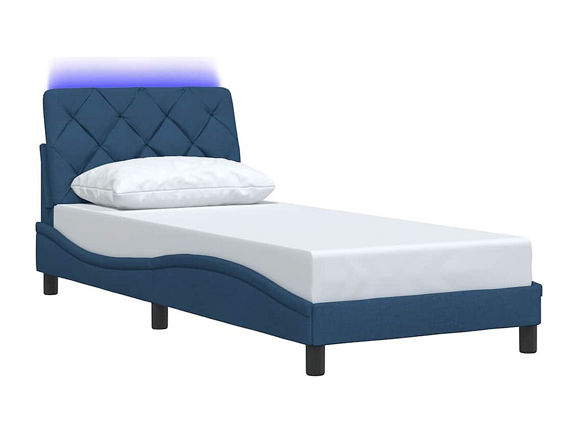 Estructura de con LED sin colchón tela azul 90x190 cm