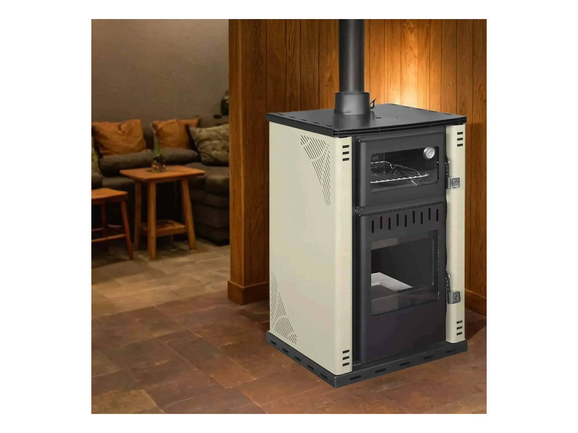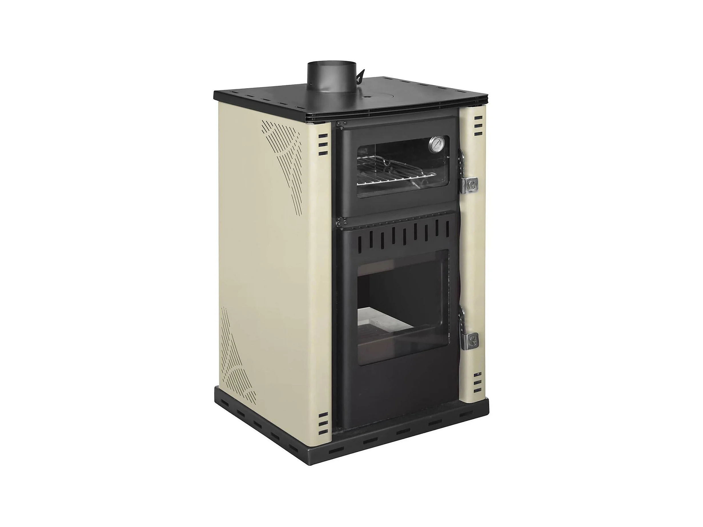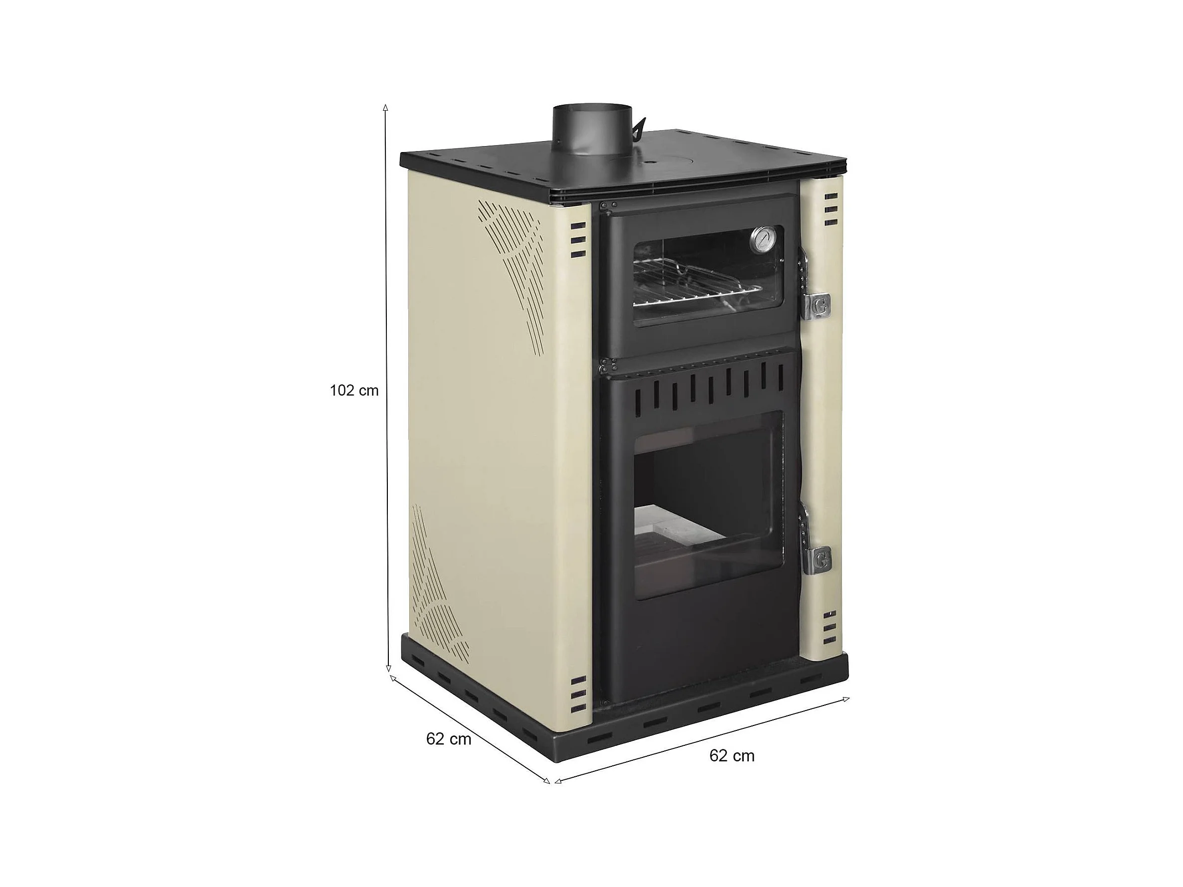 Estufa de leña Iliamna, Chimenea de leña, Hogar de leña, Estufa rústica, Made in Italy, 62x62 h102 cm, Beige
