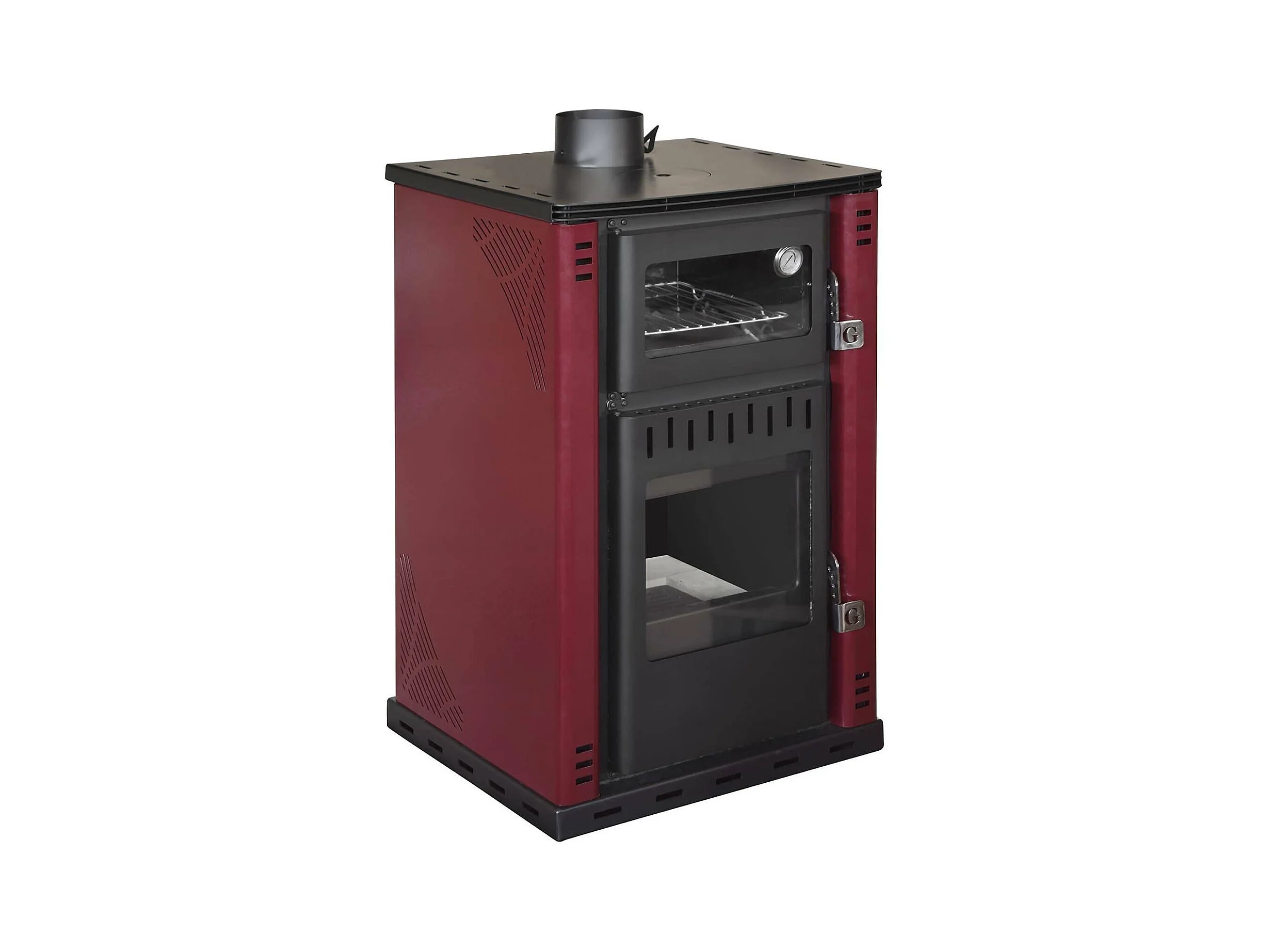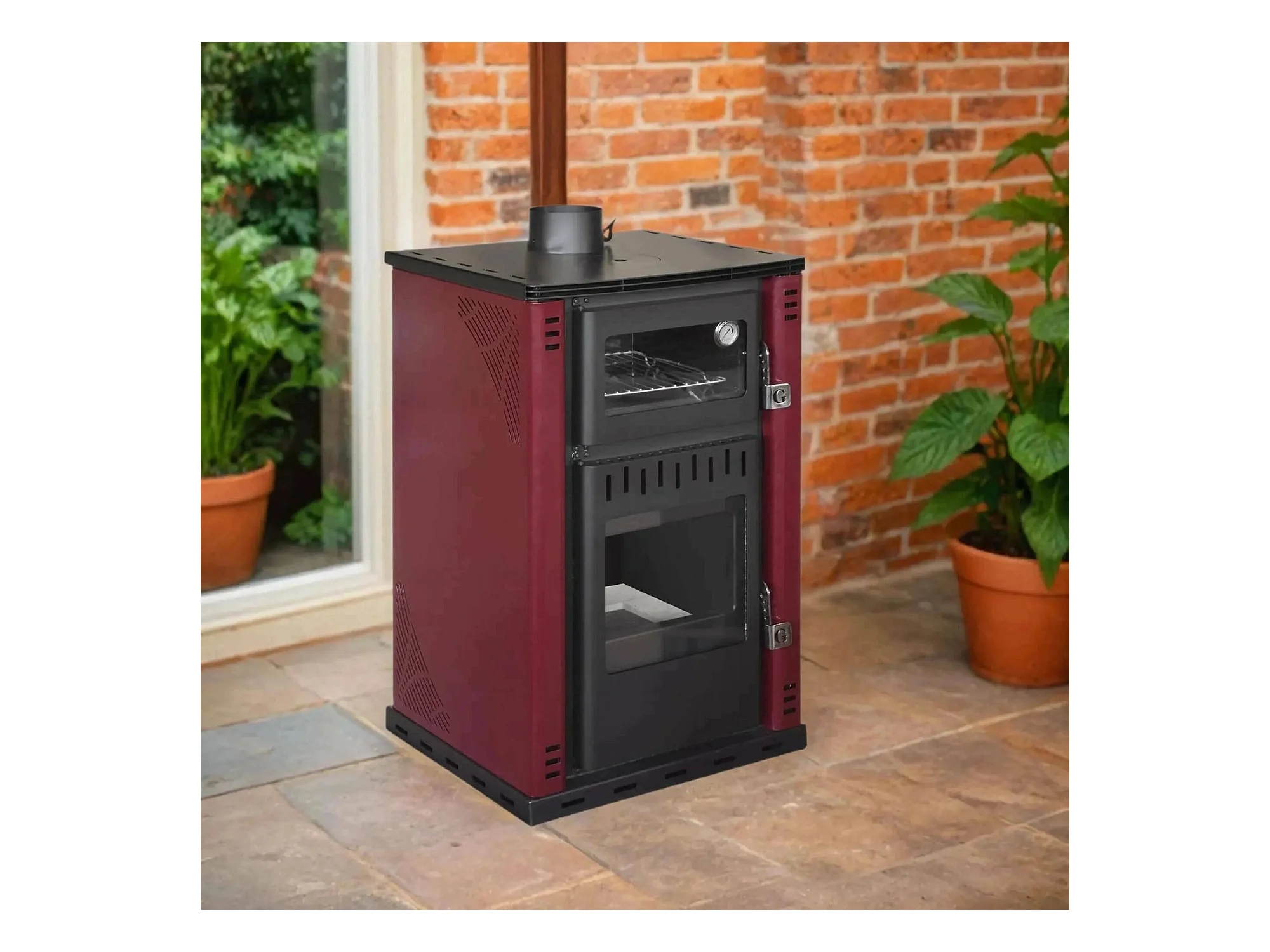 Estufa de leña Iliamna, Chimenea de leña, Hogar de leña, Estufa rústica, Made in Italy, 62x62 h102 cm, Rojo
