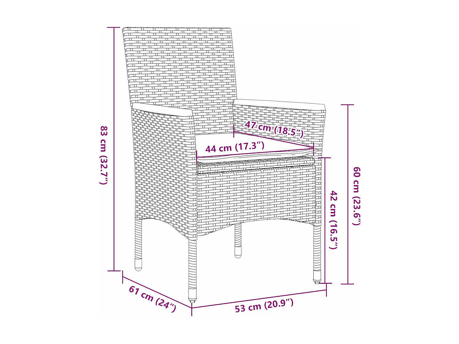 Eudes Set comedor jardín 5 pzas y cojines ratán sintético vidrio gris
