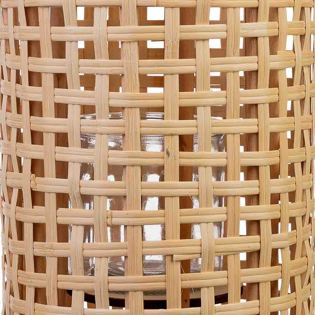Farol de bambú con recipiente de cristal para la vela D24x53,5h cm