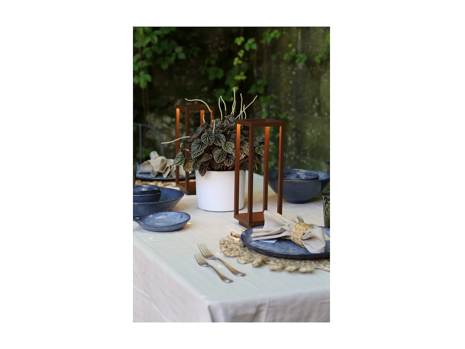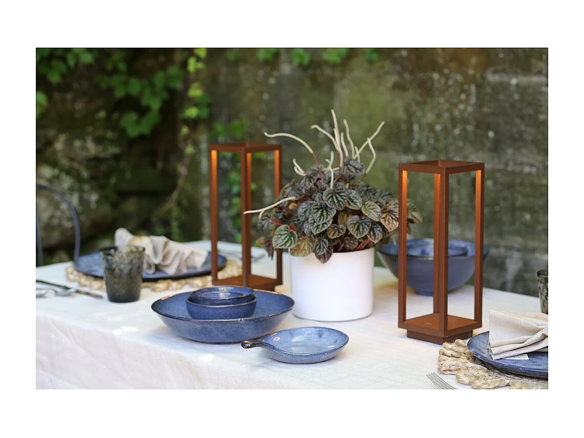 Farol de mesa LED Corten 2,2w a pilas IP54 Azafrán 3000K 12h potencia máxima en aluminio