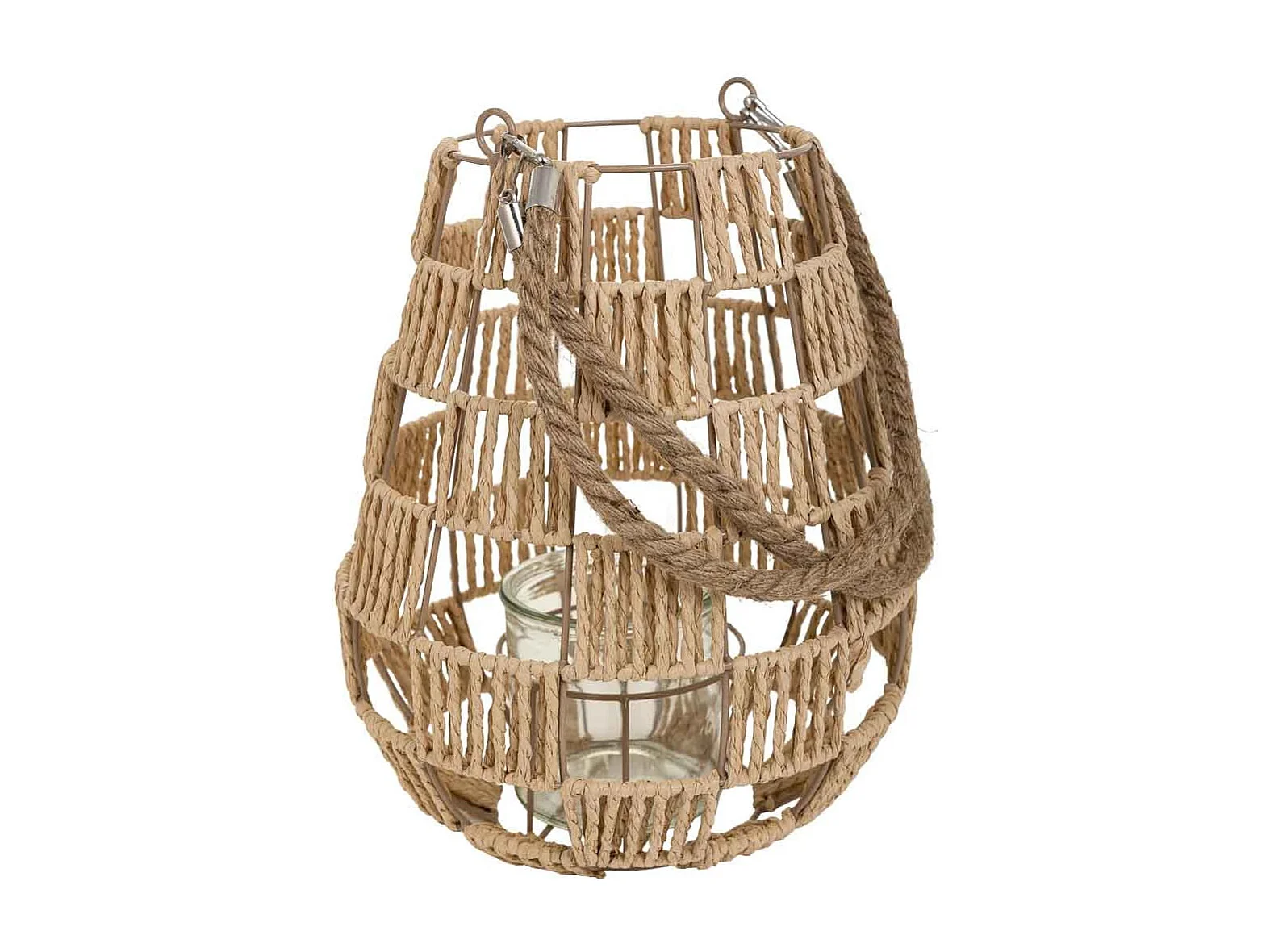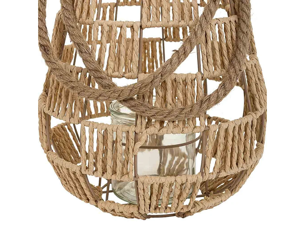 Farol portavelas de metal y cuerda de papel marrón d25x30