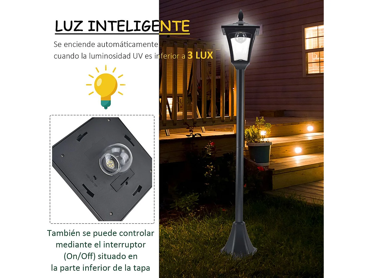 Farola Outsunny carga solar + encendido automático negro 127x17x17 cm