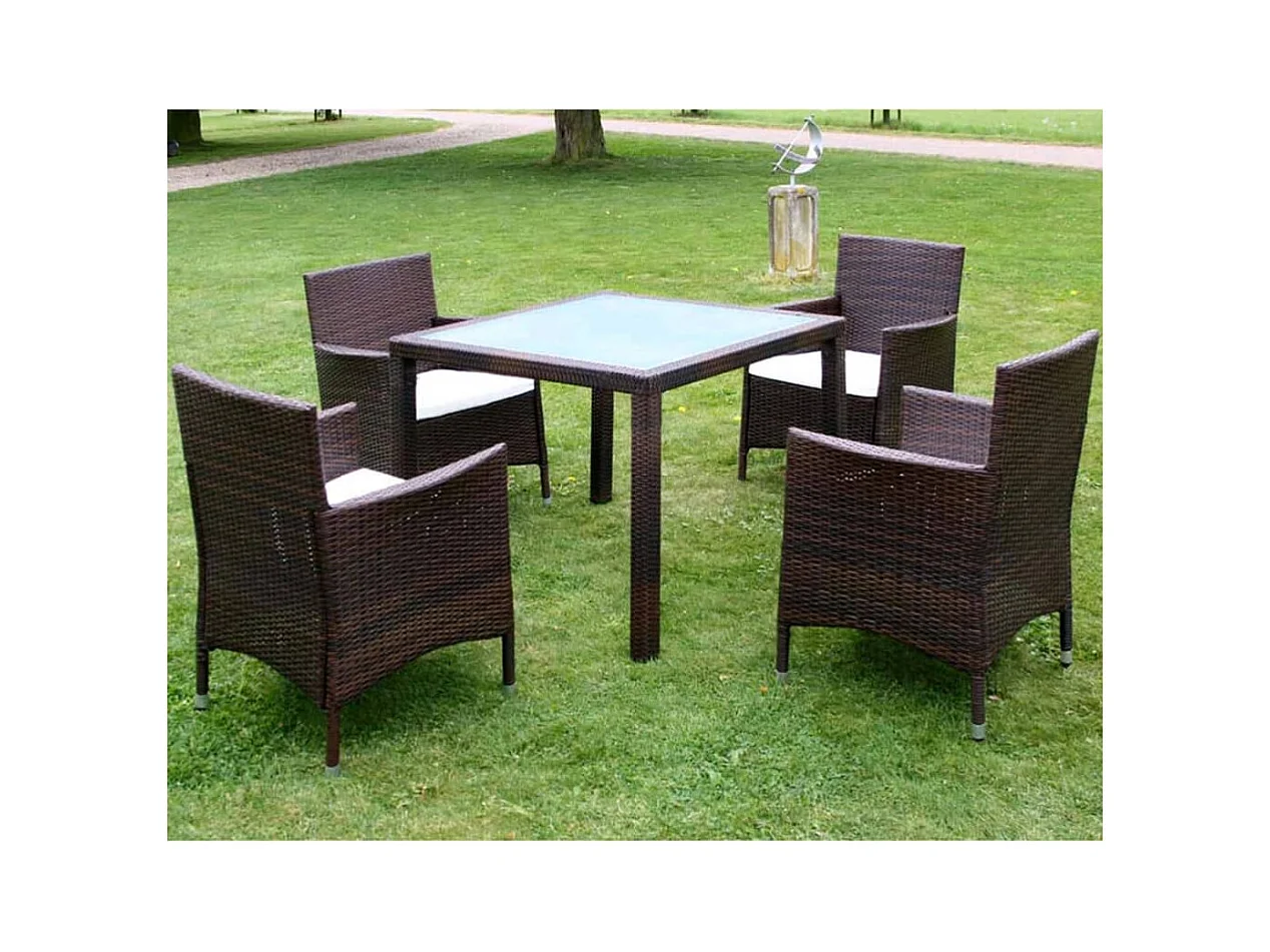Fea Set comedor de jardín 5 piezas y cojines ratán sintético marrón