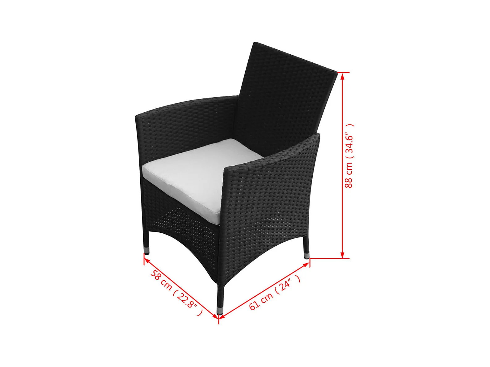 Muebles de comedor y cojines de jardín 5 piezas resina tejida negra 02_0014868