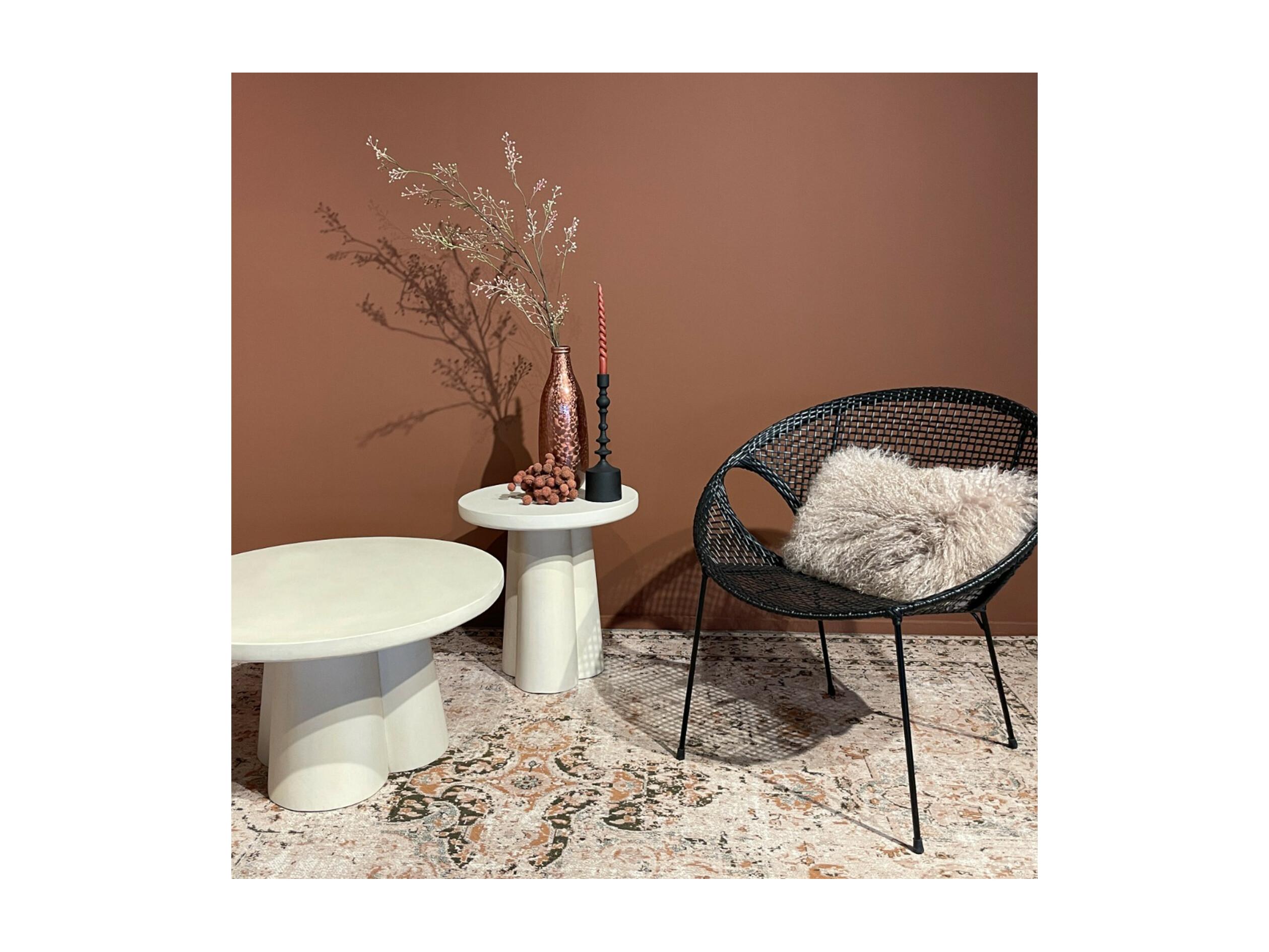 FIGARI-Mesa de centro redonda 50 cm de hormigón blanco