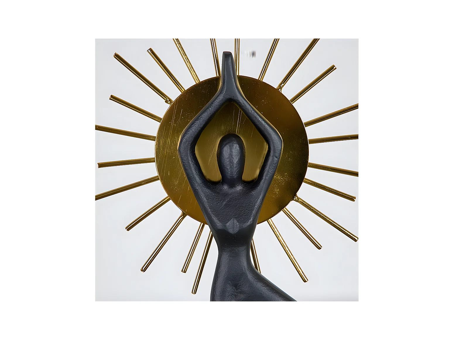 Figura de yoga de diseño sol en metal negro y dorado asana