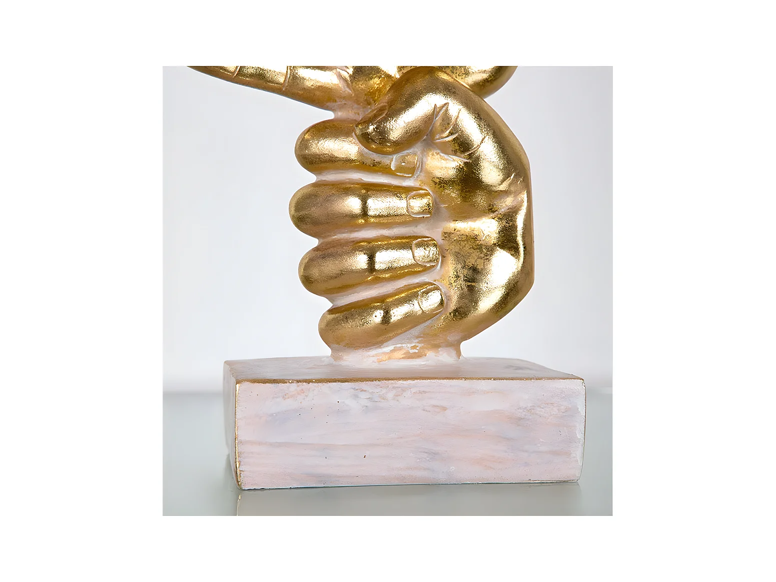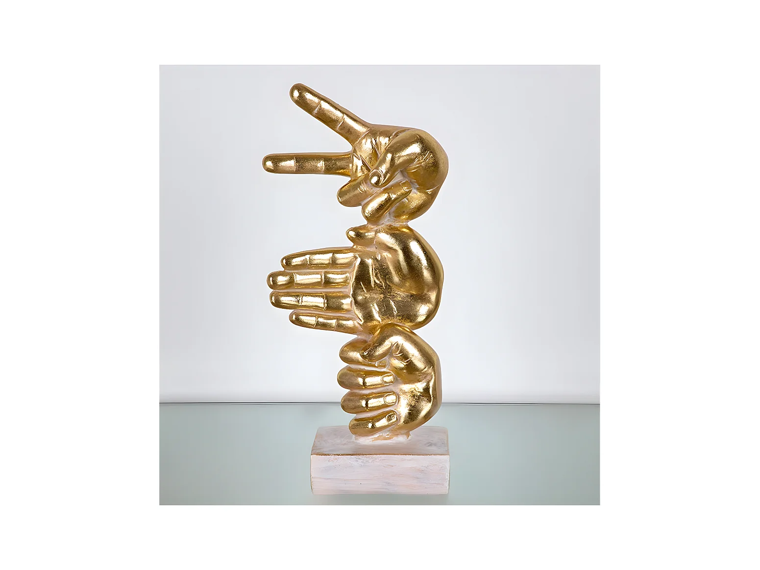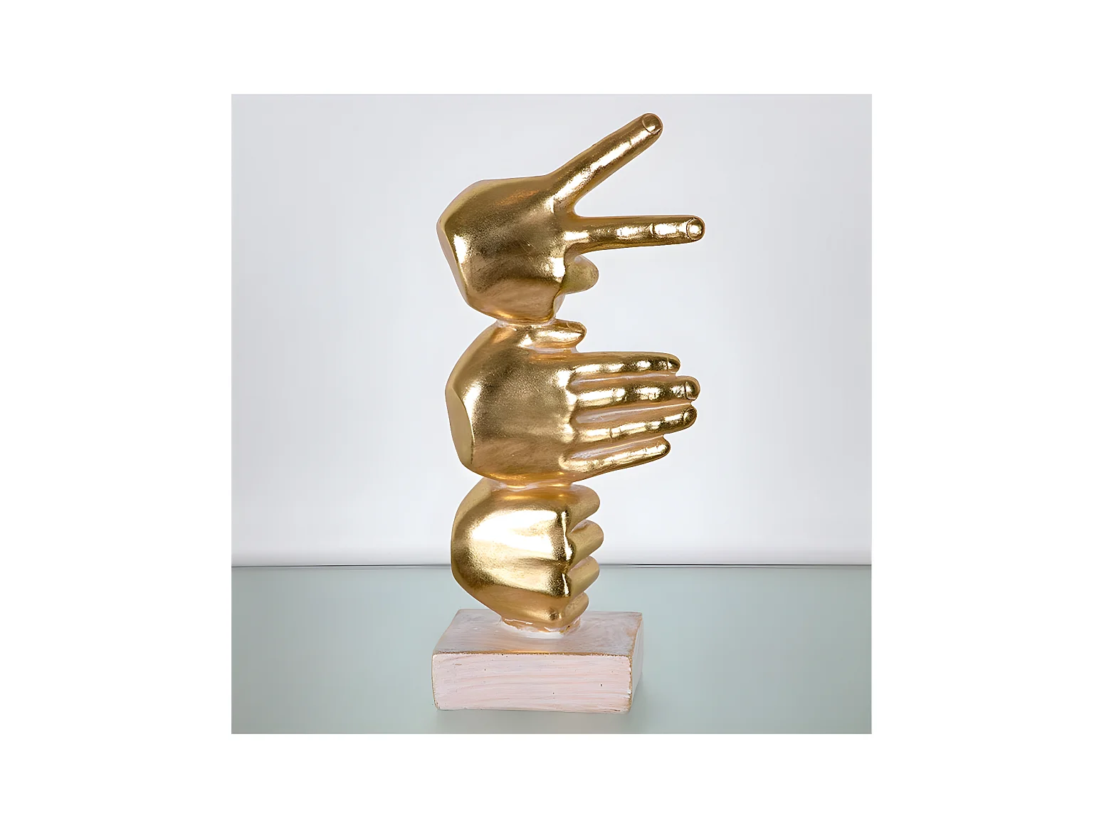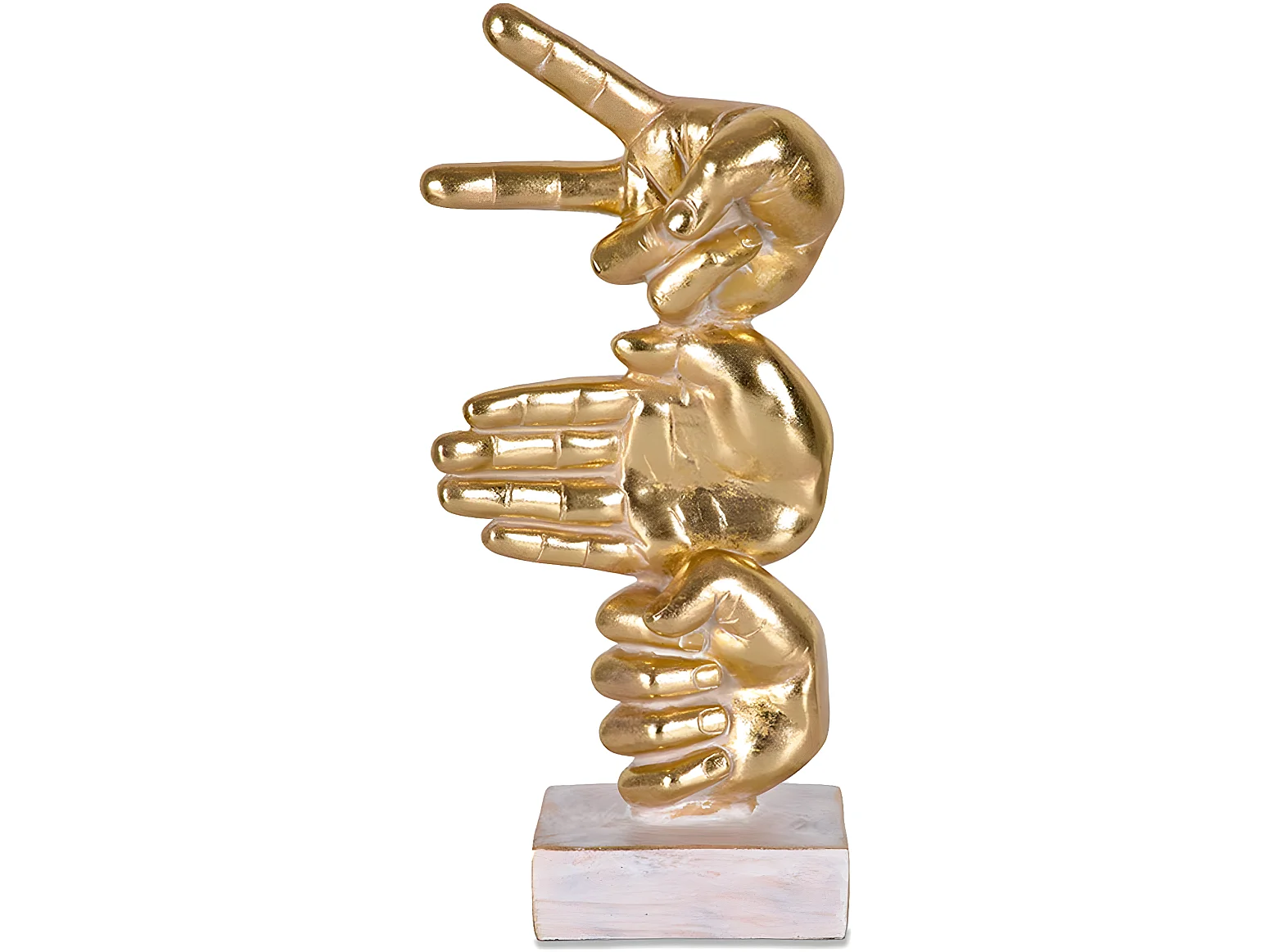 Figura manos jugando a piedra papel tijera de color dorado ontario