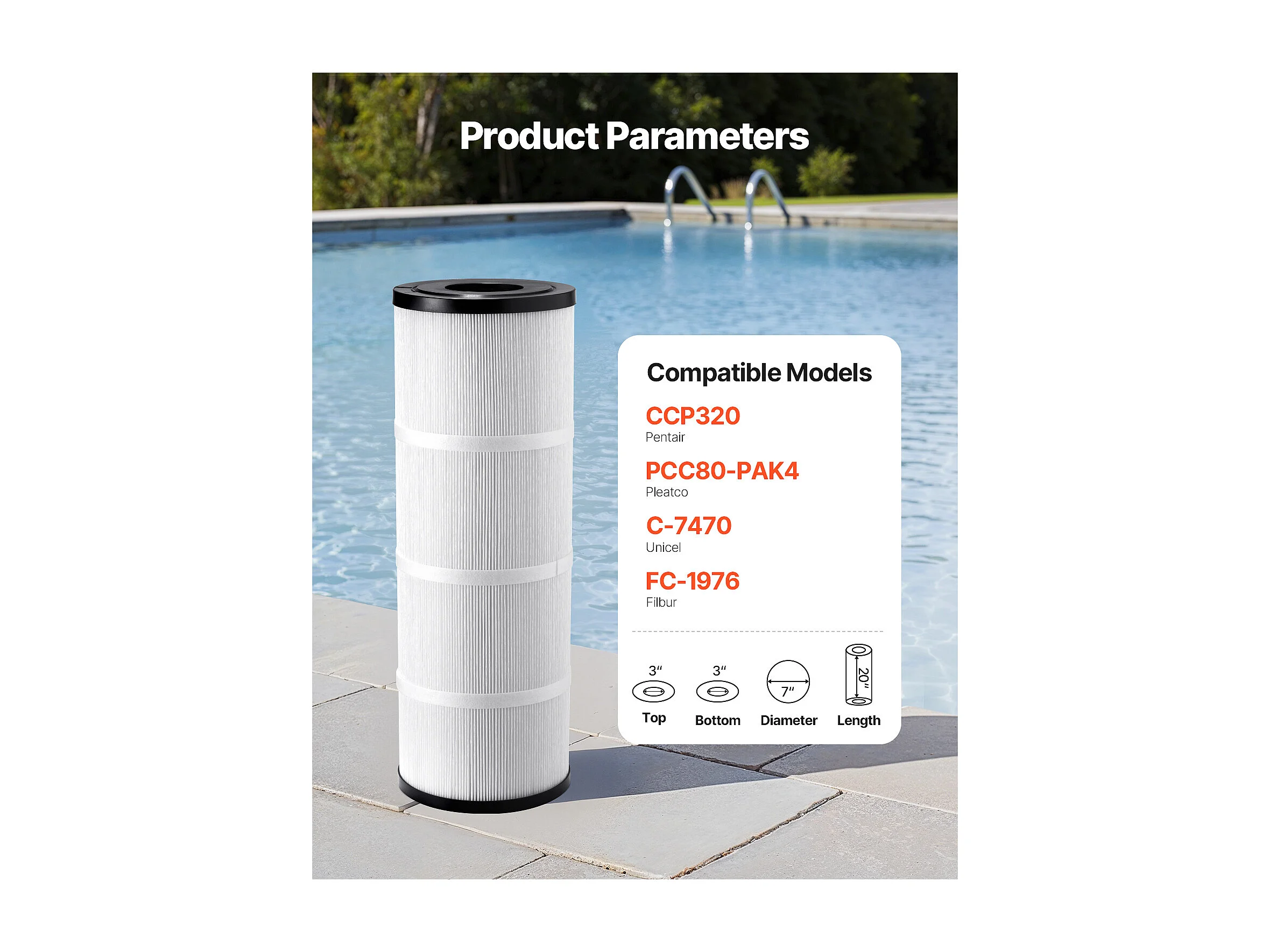 Filtros SucceBuy para Piscina, Lote de 4, Filtro de Agua 7,4 m², Filtro de Repuesto, Compatible con Pentair CCP320, Pleatco PCC80-PAK4
