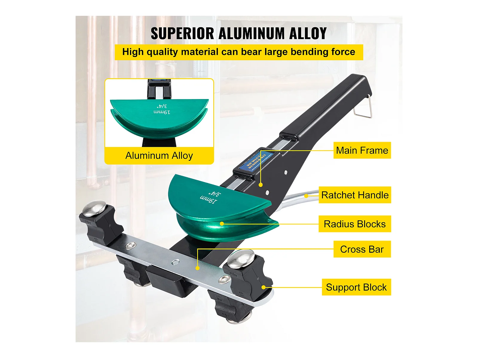 Dobladora de Tubos de Cobre SucceBuy, Dobladora de Tubos de Clics para Refrigeración CVC 0,6 a 2,2 cm, Dobladora Multicapa 10 kN