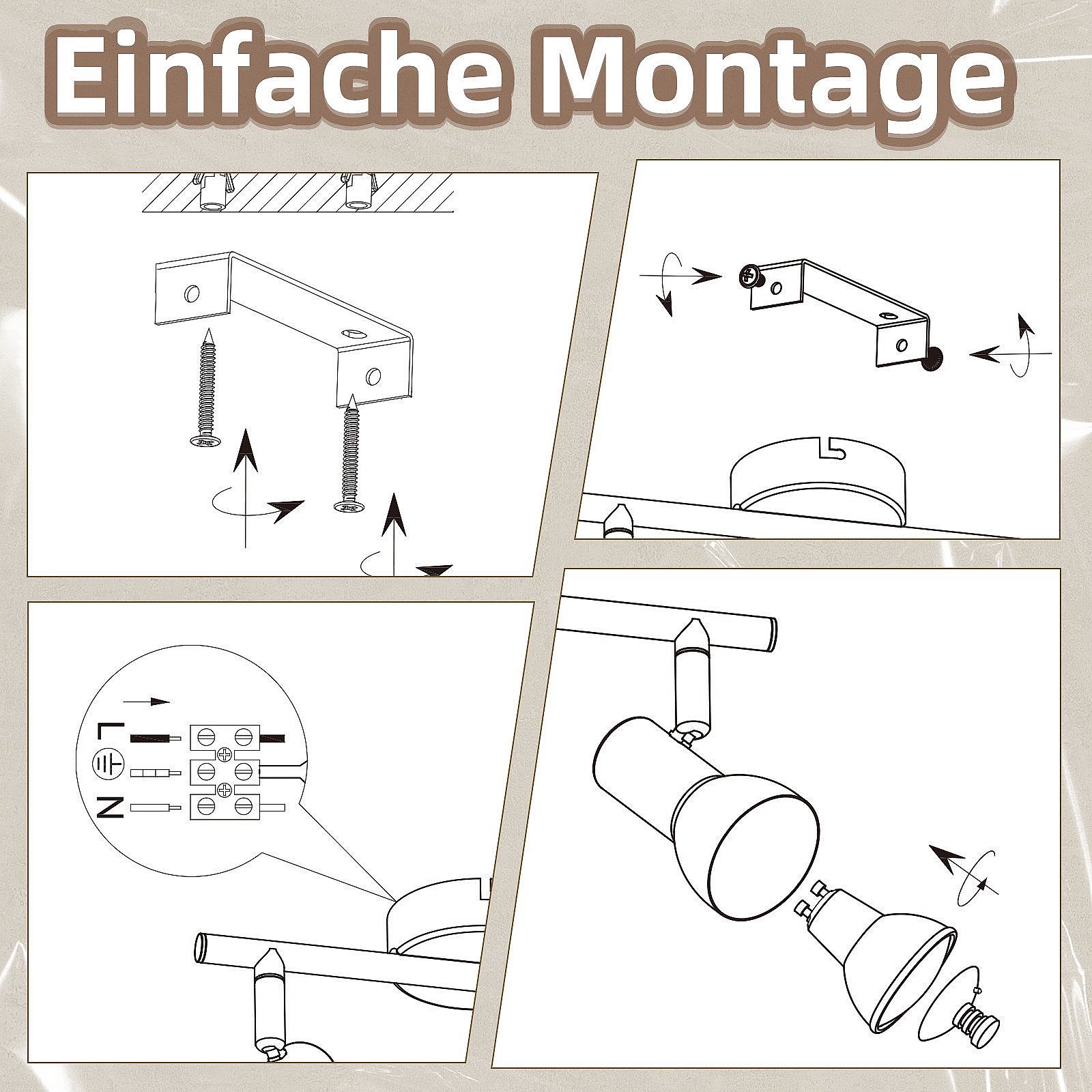 NETTLIFE Lámpara de Techo LED Negra de 4 Focos GU10 Lámpara Industrial Moderna Giratoria 330° para Pasillo Cocina Dormitorio Sala de Estar Infantil