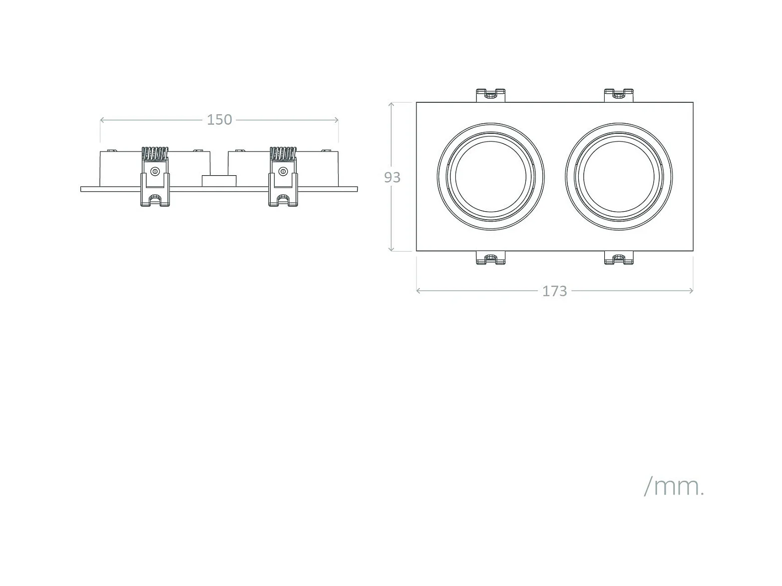 Foco Downlight Cuadrado Basculante GU10 6W Corte 75x150 mm PC No Flicker 6000K Negro Blanco Frío