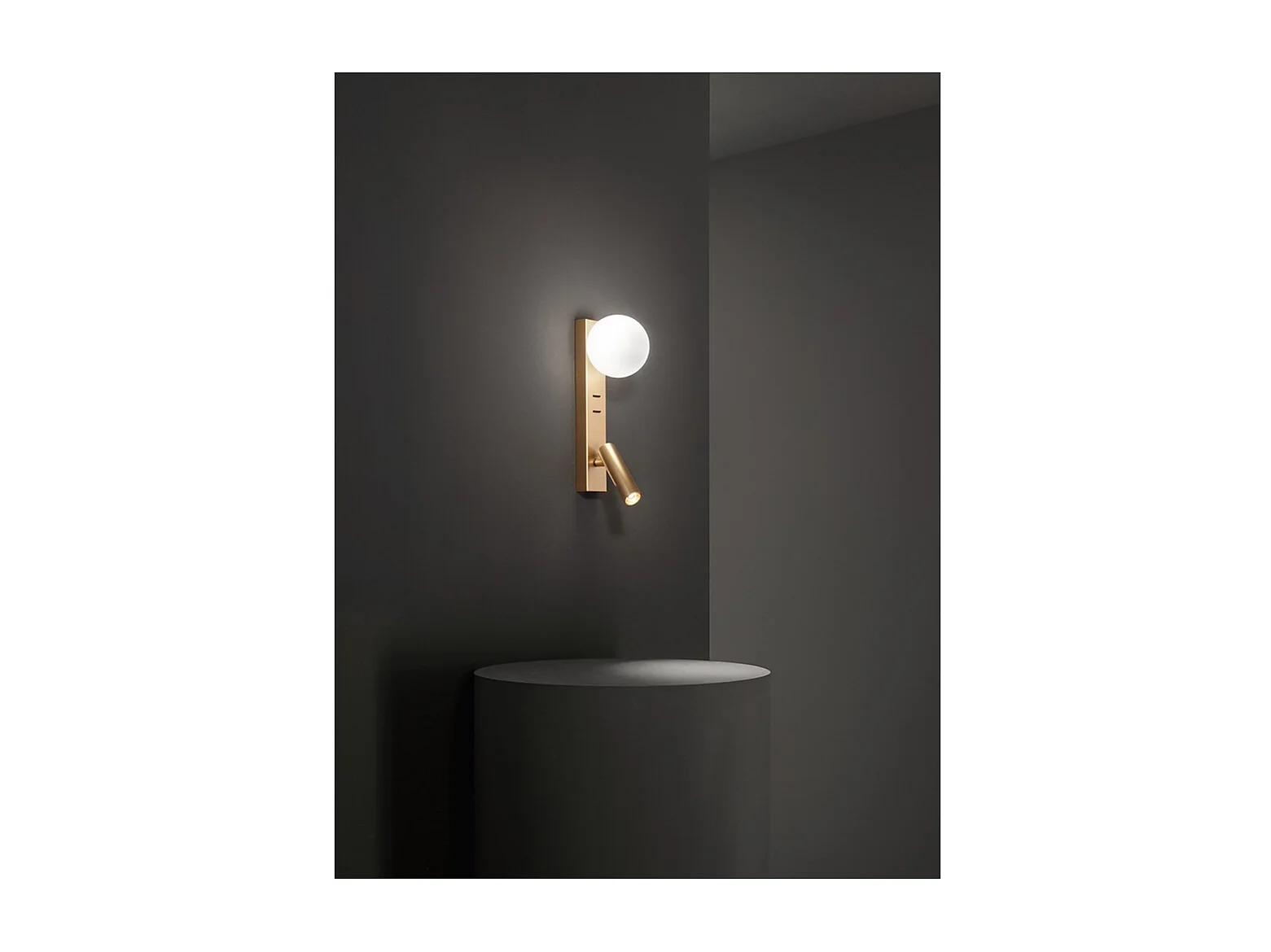 Fog - Aplique de pared con USB y USB-C, LED 3W + G9, Esfera blanca, 3000K, Cuerpo orientable, Difusor de cristal - Perenz - Dorado