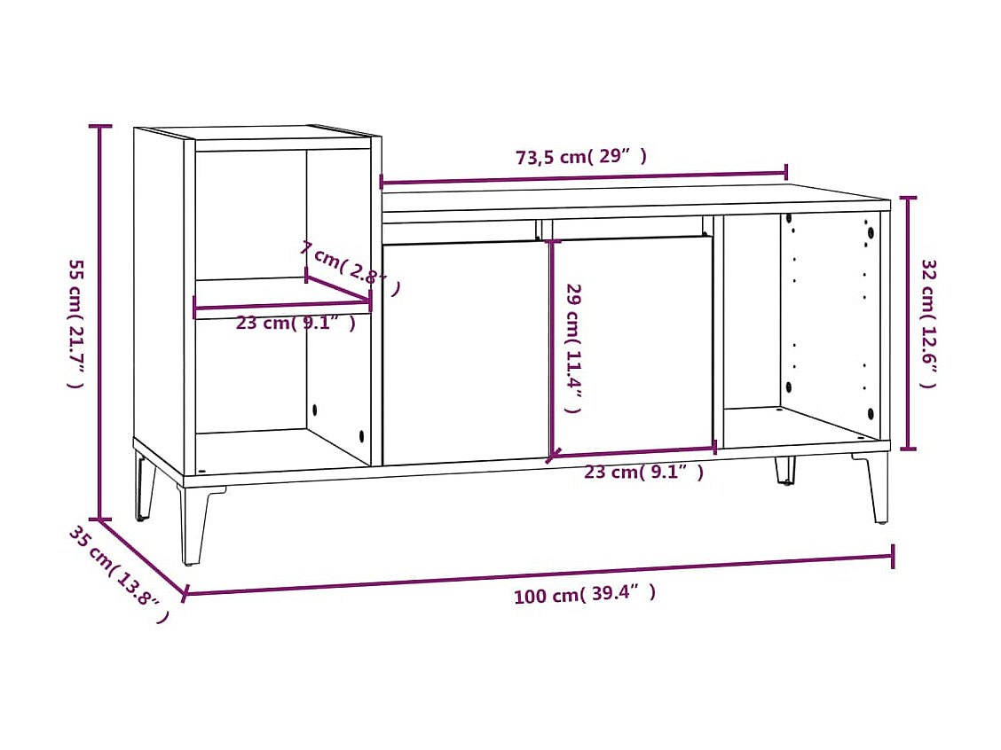Fornir Mueble de TV madera contrachapada gris Sonoma 100x35x55 cm