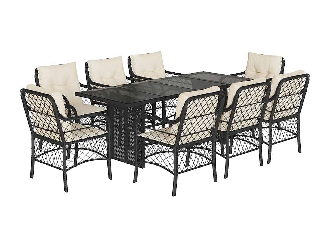 Emory Set de comedor de jardín 9 pzas y cojines ratán sintético negro