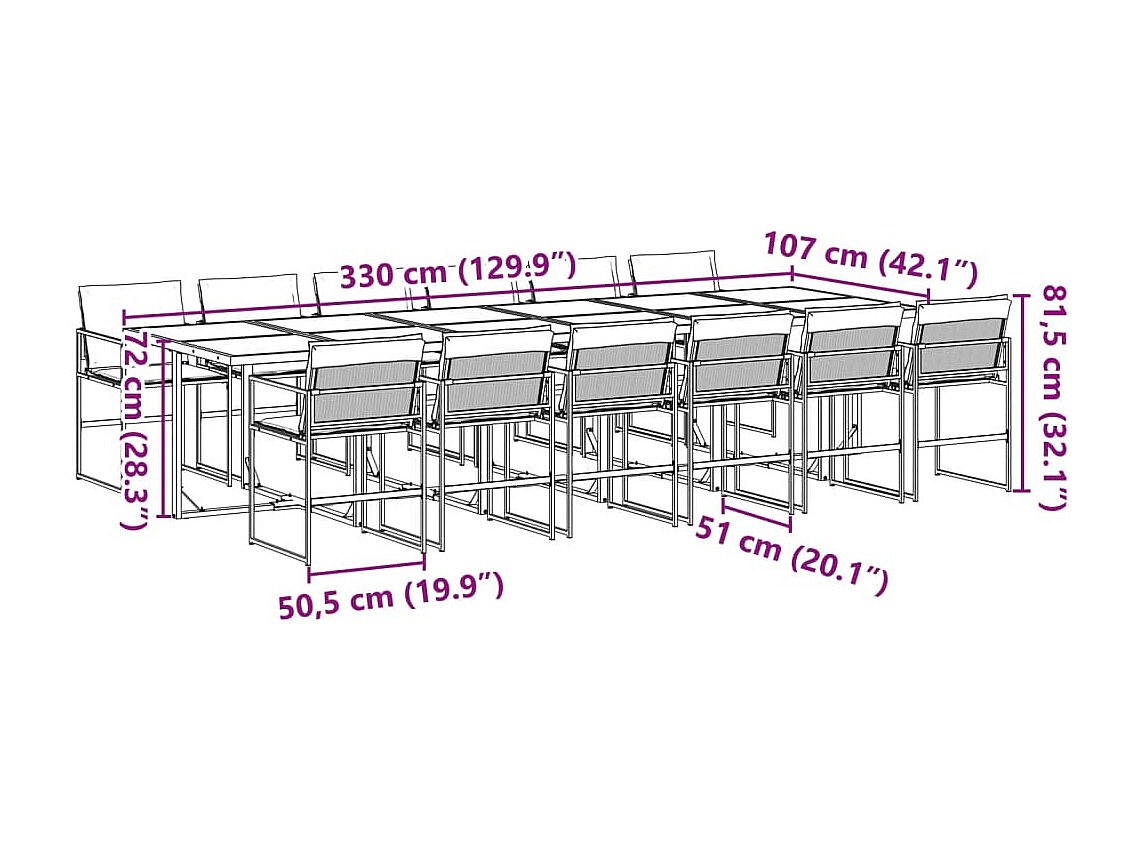 Dario Paolo Juego de comedor de jardín 13 pzas con cojines textileno negro