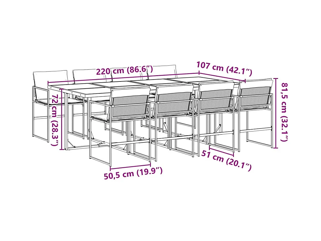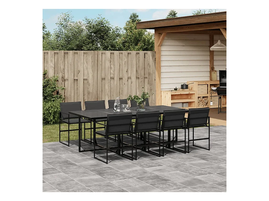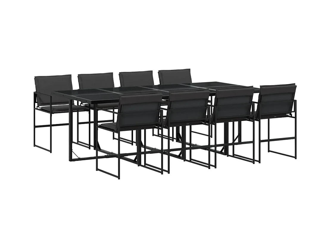 Francis Juego de comedor de jardín 9 piezas con cojines textileno negro