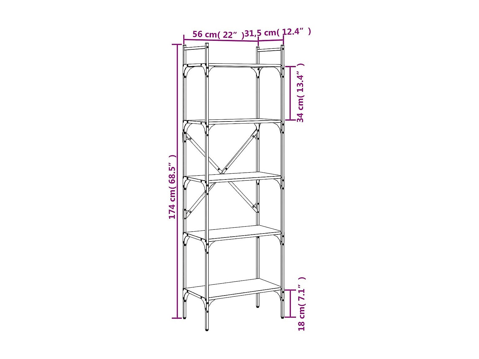 Fredrikstad Librería de 5 estantes madera gris Sonoma 56x31,5x174 cm