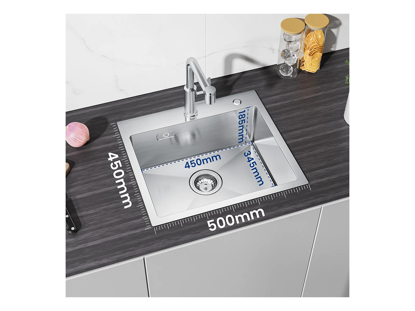 Cecipa max Fregadero de Cocina de 1 Seno, Fregadero de Cocina 50 x 45 x 18,5 cm, Fregadero Cuadrado de Acero Inoxidable Cepillado, Modelo UE