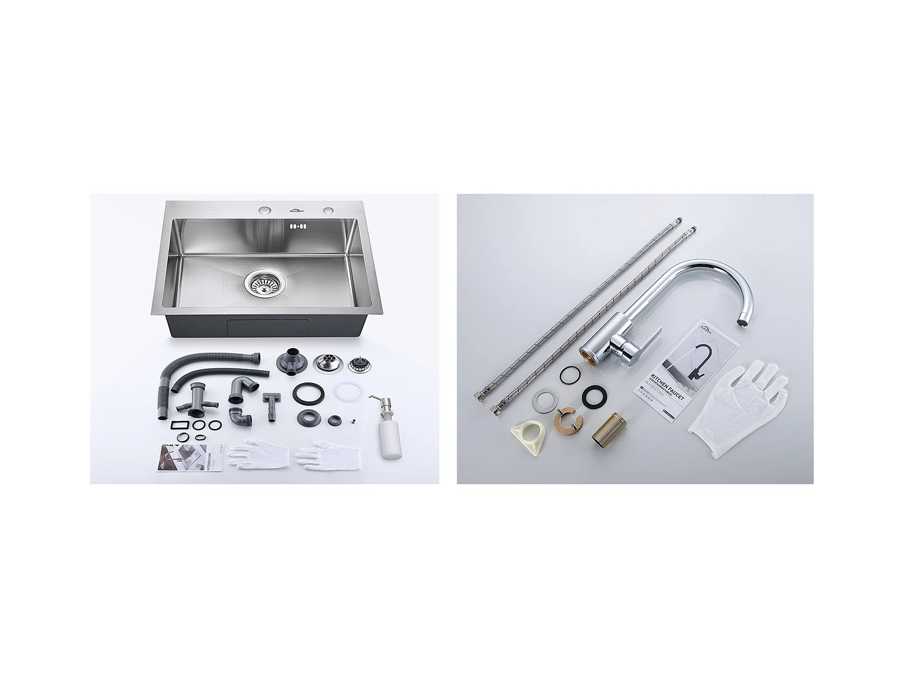 Fregadero Cocina 1 Bandeja 55*45CM Fregadero Empotrado/de Poner con Dispensador de Jabón+RobinY Cocina giratoria de 360°, cromado