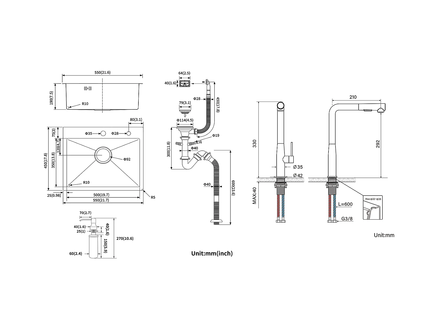 AuraLum Max Fregadero Cocina 1 Bandeja 55*45CM Fregadero Empotrado y de Colocar con Dispensador de Jabón+Grifo de Cocina retráctil de dos funciones
