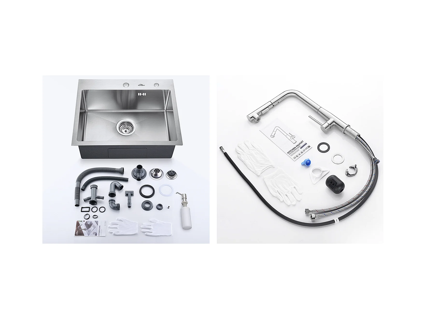Fregadero Cocina 1 Contenedor 55*45CM Fregadero Empotrado y de Colocar con Dispensador de Jabón + Grifo de Cocina Inox Extraíble