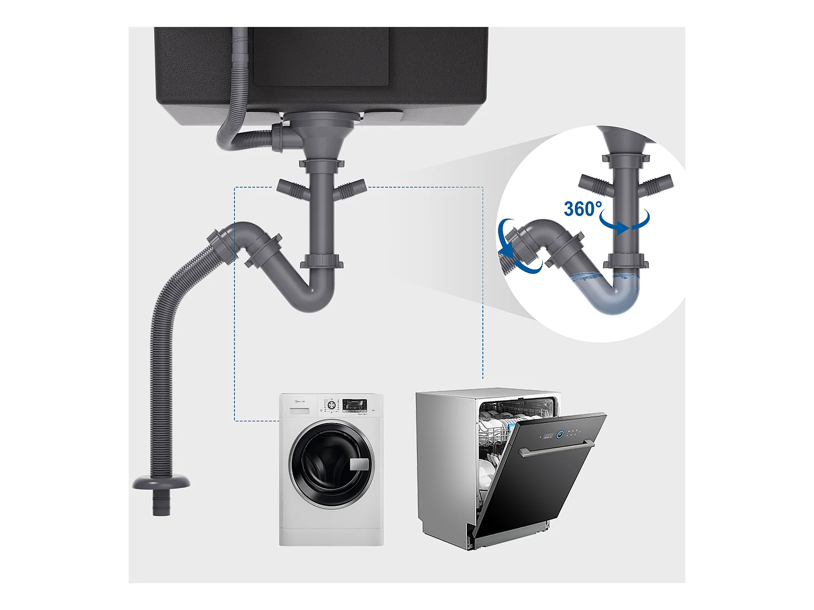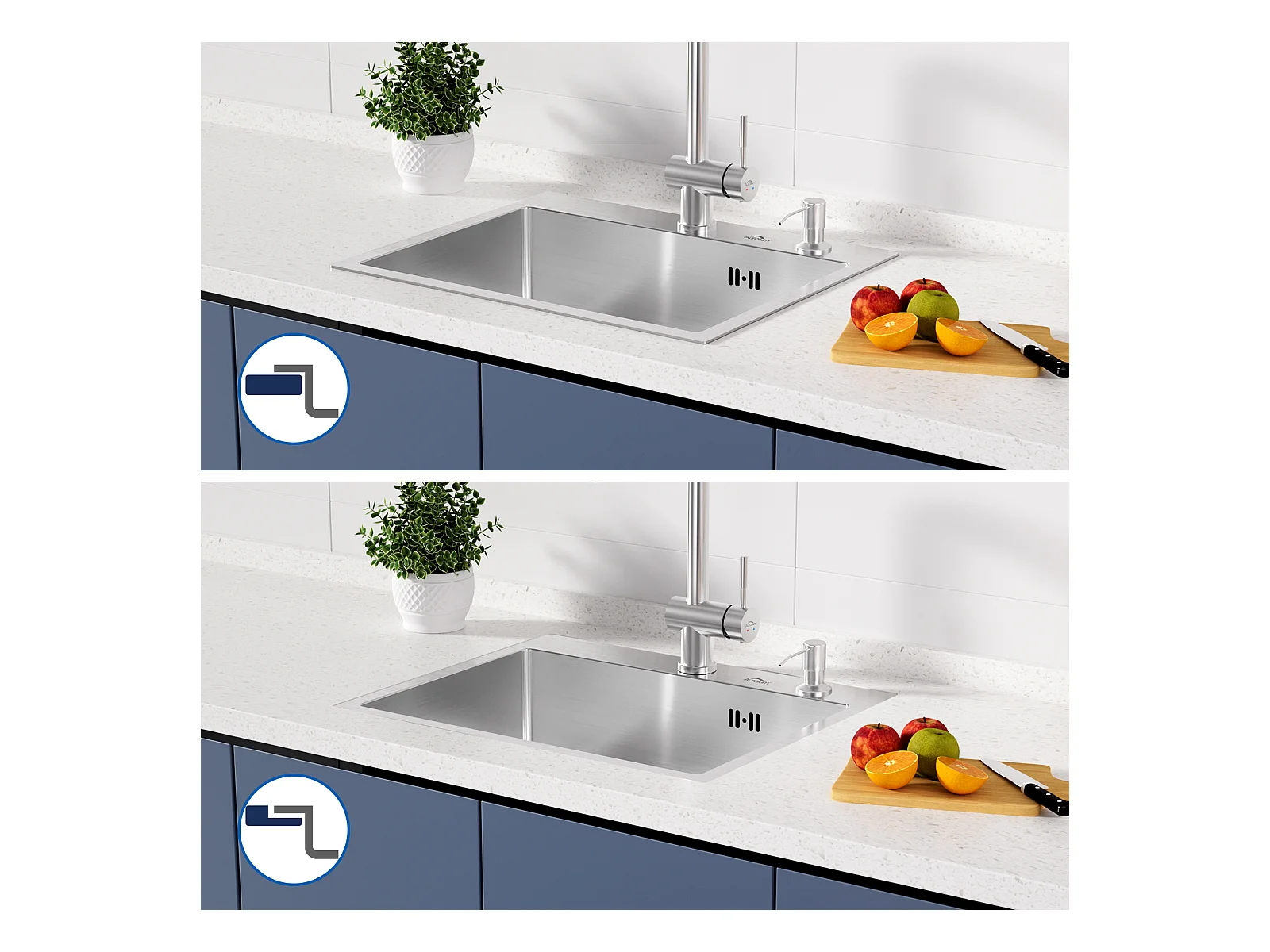 Fregadero Cocina 1 Bandeja 55*45CM Fregadero Empotrado y para Colocar con Dispensador de Jabón+MiTigeur Cocina Plegable Giratorio 360°