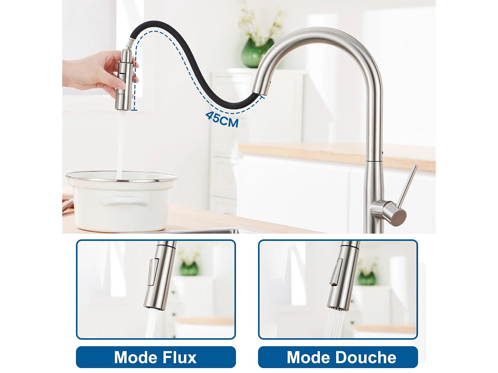 Cecipa max Grifo de Cocina Extraíble Mezclador de Cocina con Ducha Extraíble de 40 CM y 2 Chorros de Agua Fría y Caliente Cepillado, Modelo UE