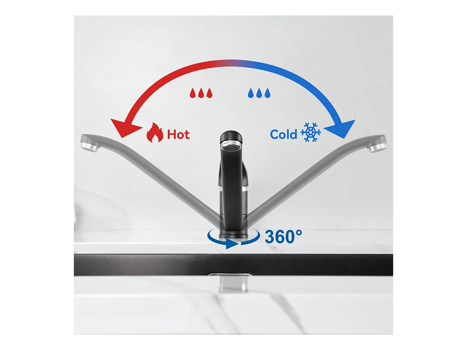 Mezclador Cocina con Ducha Extraíble Negro mate Rotativo a 360 °eN Acero Inoxidable Grifo Cocina Fregadero 2 Funciones Mezclador Cocina