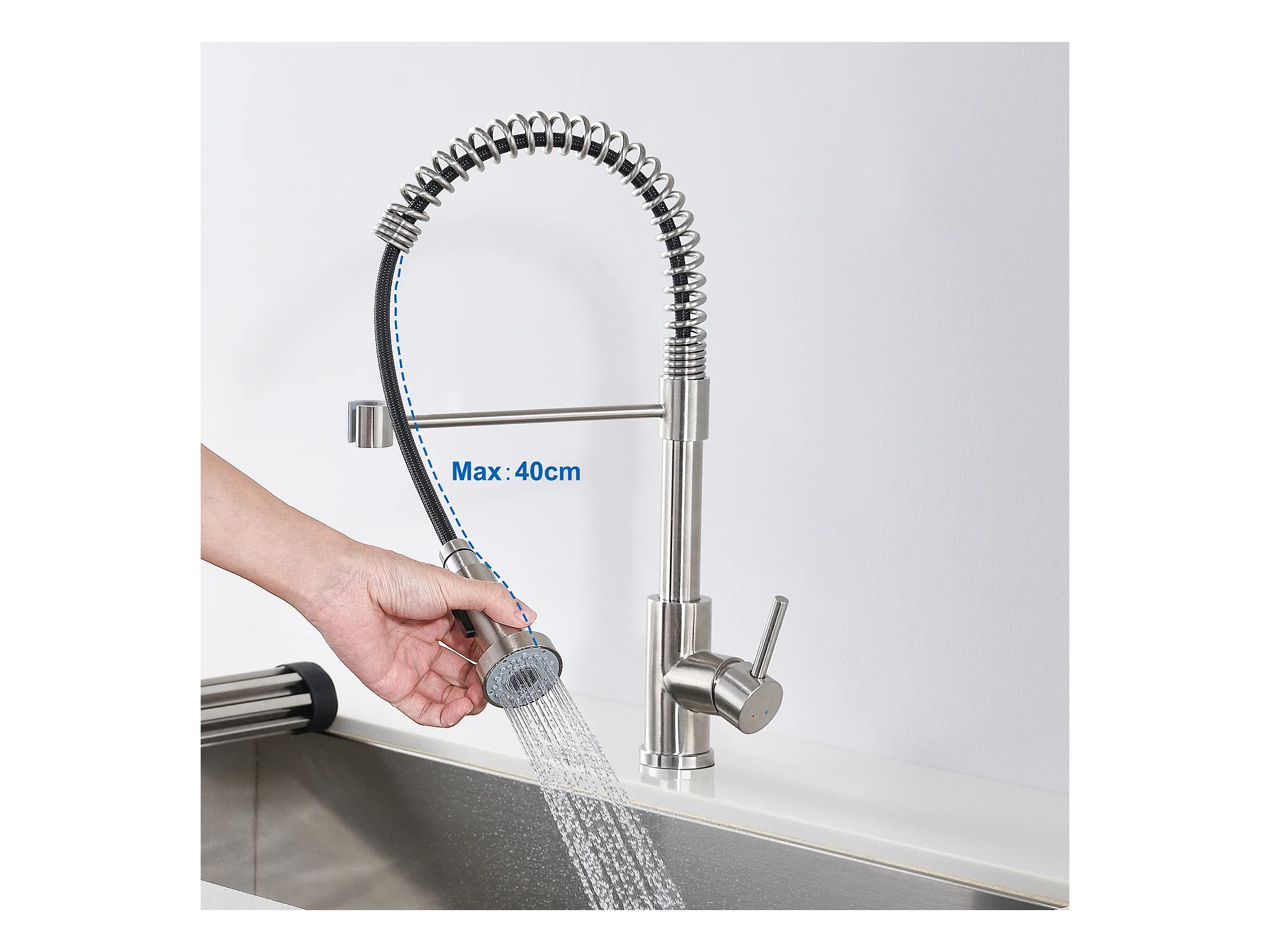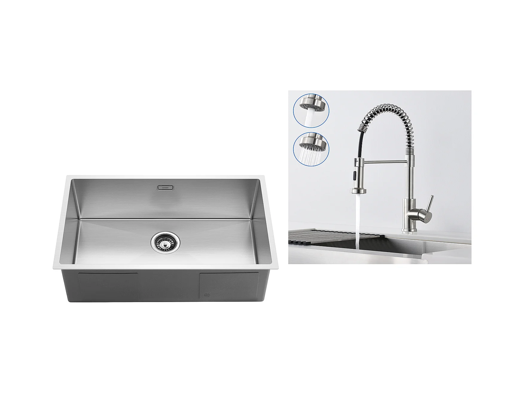 Fregadero Cocina 1 Bandeja 74*44*20CM 304 Inox Fregadero Cepillado con SifónY Trop-Plein+Grifo Cocina Ducha Extraíble Dos Jets Giratorio 360°