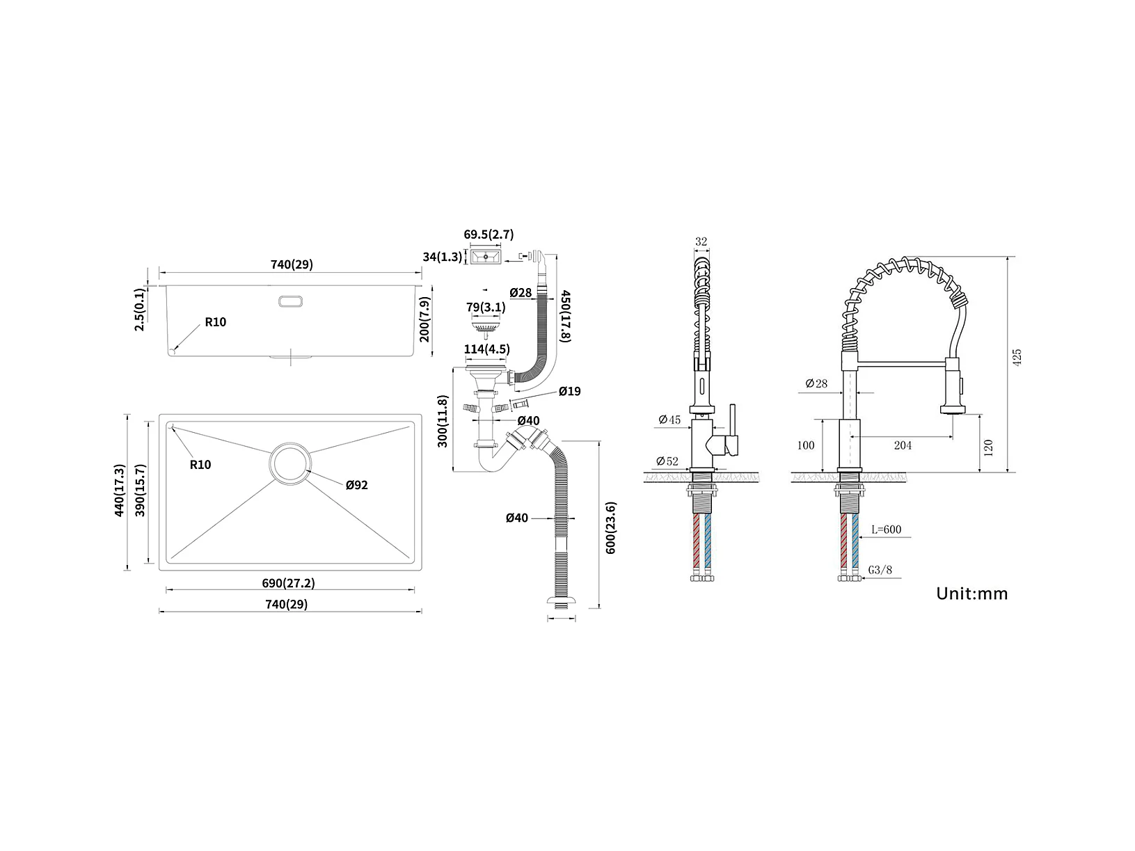 Lonheo Max Fregadero Cocina 1 Bandeja 74*44*20CM Fregadero Cepillado Montaje empotrado/Flor/Subplano Inoxidable 304 con Sistema de Drenaje,Modelo UE