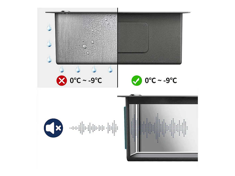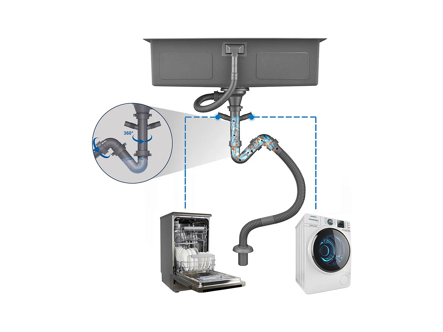 Fregadero Cocina 1 Bandeja 70*44*19CM,para Empotrar/Fleur/Sous-Plano,Sifón/Trop-Plein+Grifo Cocina,Orientable 360°,Agua Caliente/Fría,Negro