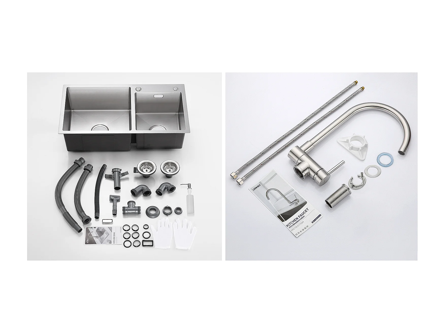 Fregadero Cocina 2 Bandeja 75x45x19cm, Empotrado / para colocar con dispensadorJabón+Mestidor Cocina Acero Inox 304 Plegable Giratorio a 360°