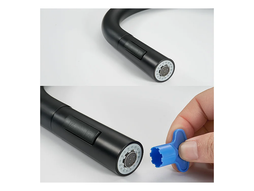 AuraLum Max Grifo de Cocina, Mezclador de Cocina conDucha extraíble, Boca Alta, Inversor 2 jets (Laminar/Lluvia), Rotación 360°, Negro,Modelo UE