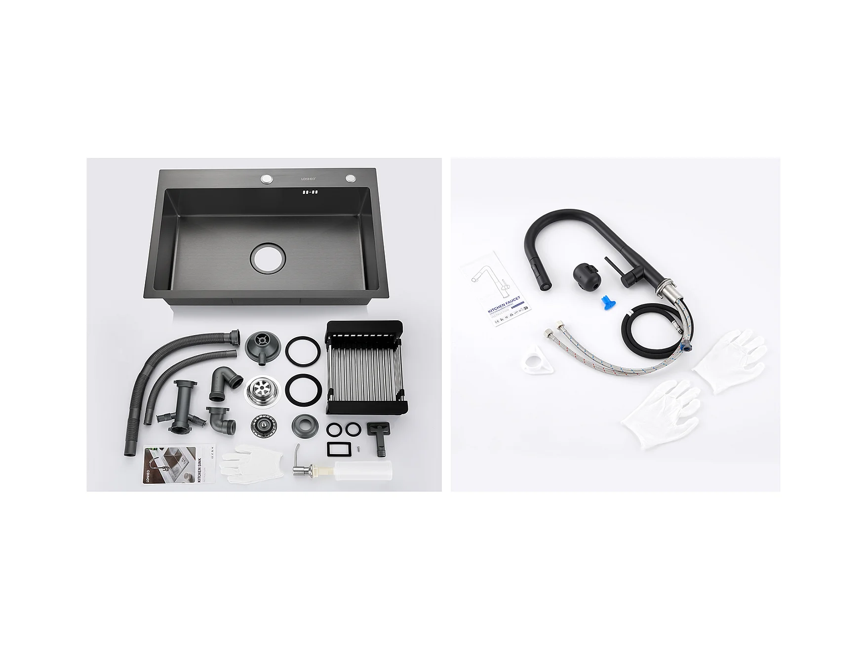 Lonheo Max Fregadero de Cocina Negro 68x45x19CM con Distributor Jabón y Escurridor Cesta+Mezclador CuiSine Inoxidable 304 Abatible Girante,Modelo UE