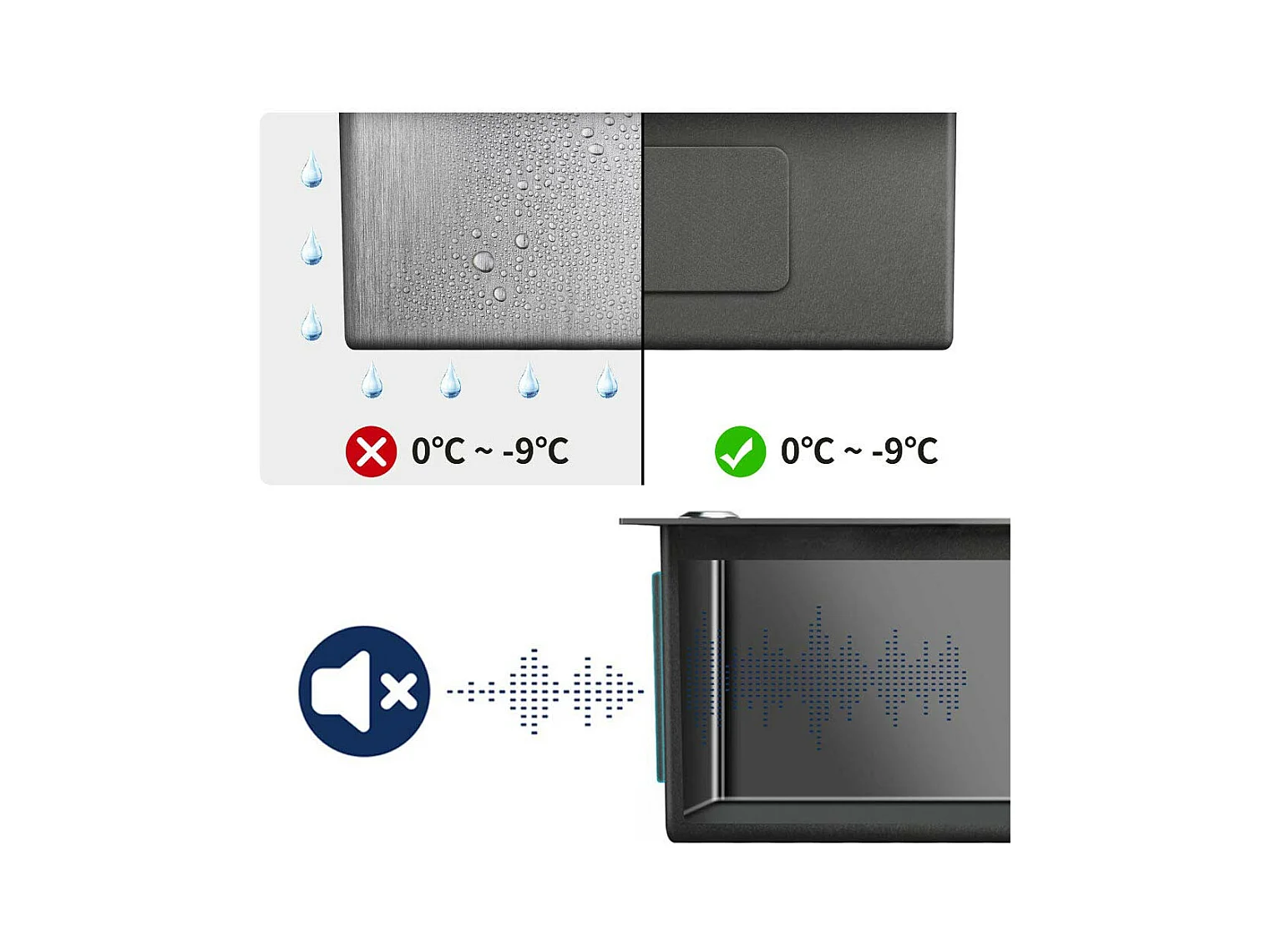 Fregadero Cocina Negro 68x45x19CM,Distributor Jabón/ Escurridor Cesta+Grifo Cocina,Orientable 360°,Agua Caliente/Fría,Negro