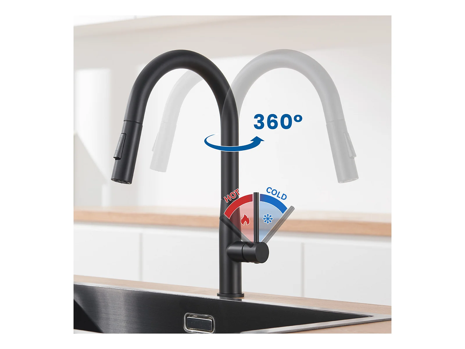 Cecipa max Grifo Mezclador de Cocina con Resorte con 2 Modos de Salida de Agua Grifo Mezclador para Fregadero con Grifo Extraíble Giratorio 360° Negro Modelo UE