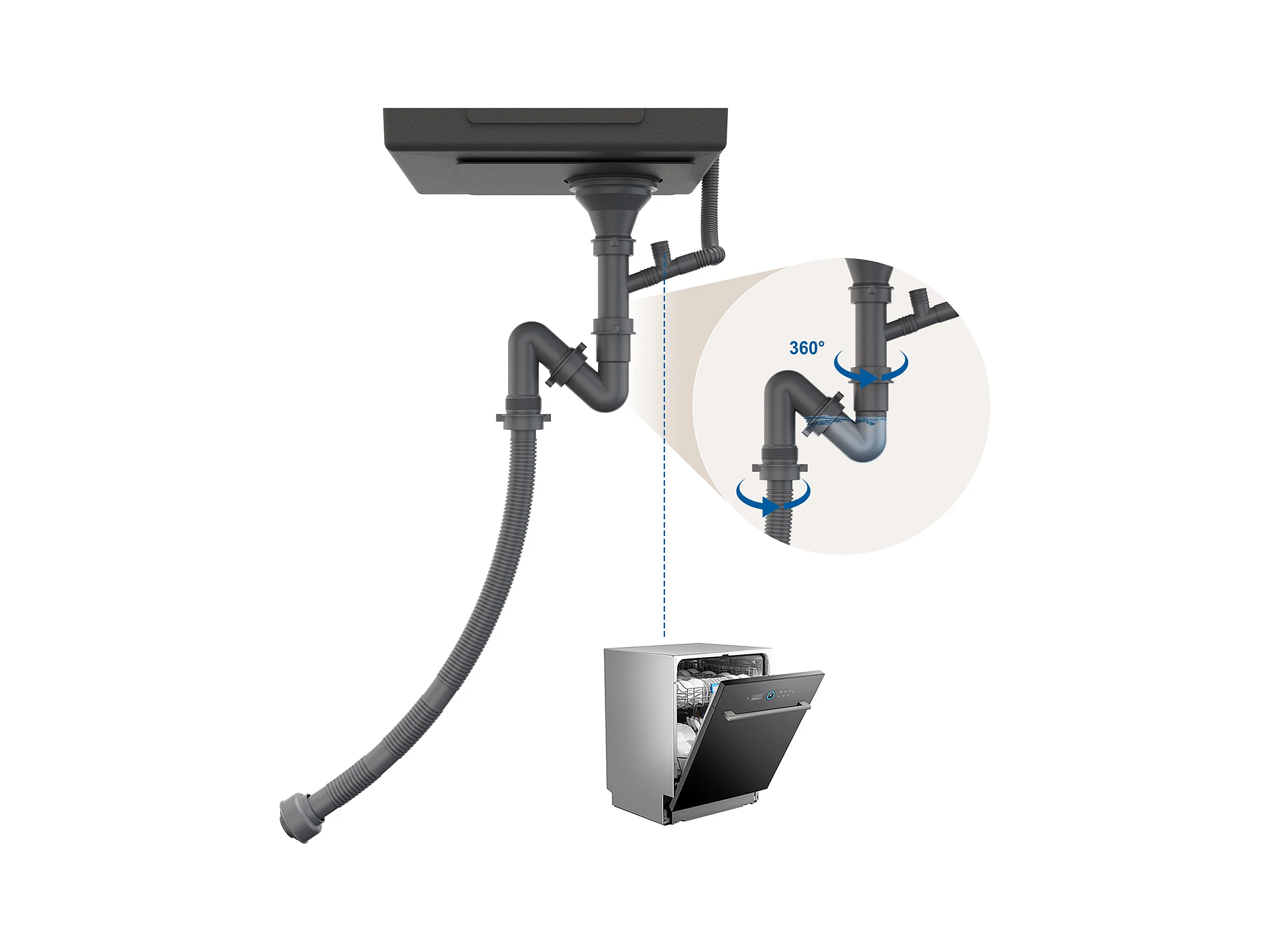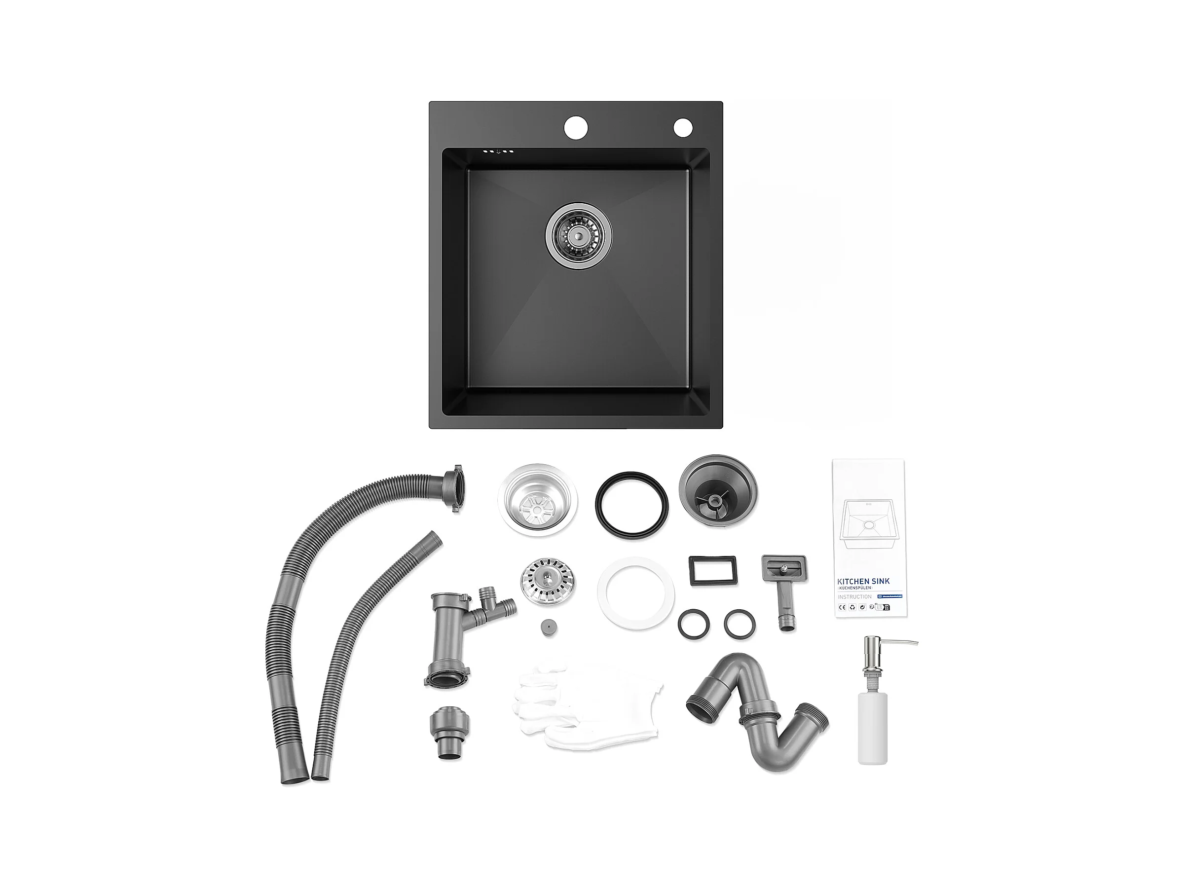 Fregadero cocina de 1 seno,gris-negro,44*49*20 CM,con dispensador de jabón,inoxidable,empotrado/independiente+grifo de cocina, ajustable 360°,negro