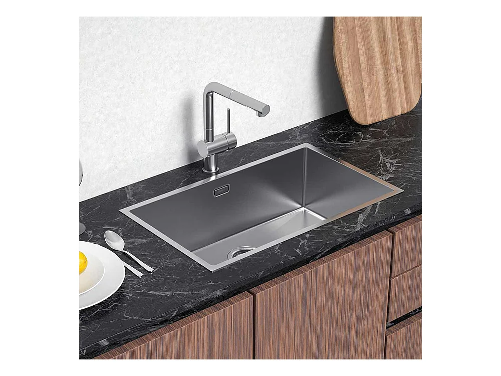 Fregadero Cocina 1 Bandeja 74*44*20CM 304 Inox Fregadero Cepillado con Sifón y Trop-Plein+ Grifo de Cocina Inox Extraíble Rotativo 360 °