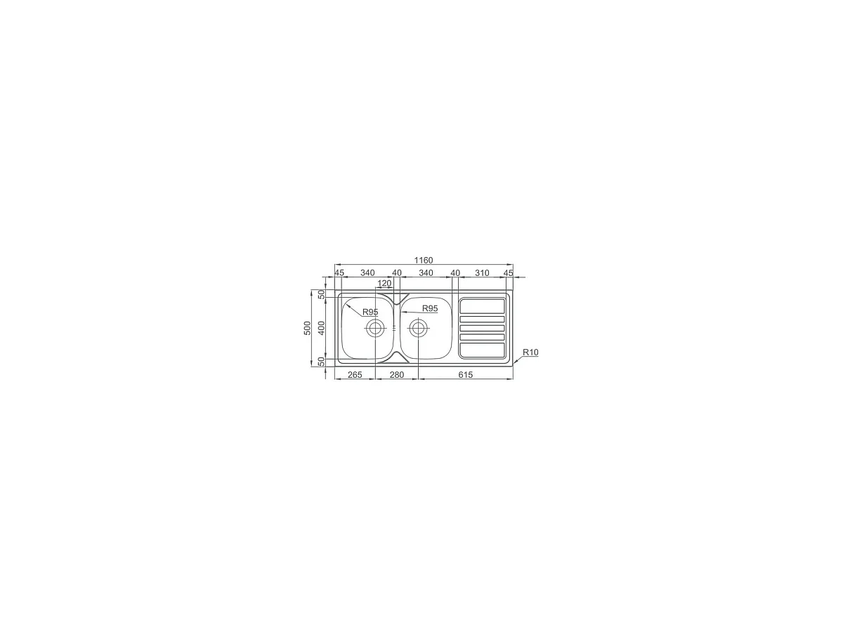 Fregadero con escurridor a la derecha con orificio grifo Inglaterra, 116 cm(ancho)50 cm(la