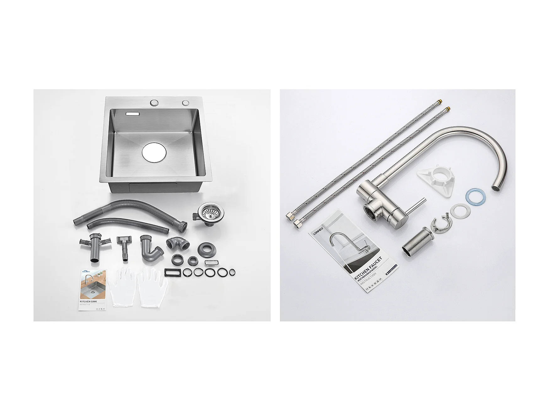 Fregadero CuiSine 1 Bandeja 45x45CM Acero Inoxidable 304, empotrado y para colocar + Mezclador de cocina inoxidable 304 Plegable Giratorio 360°