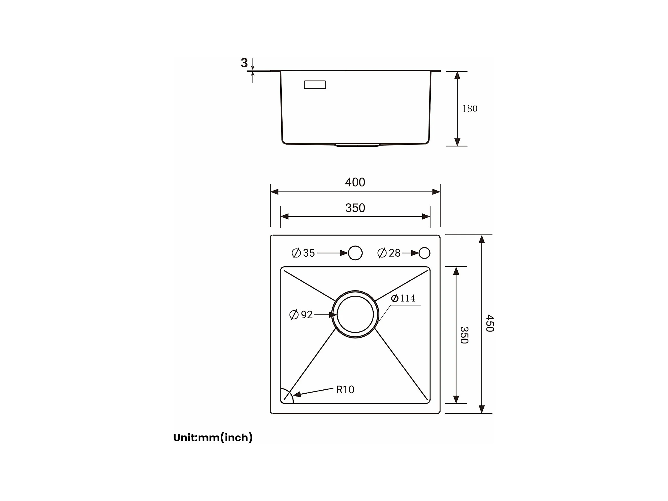 Fregadero de cocina Cecipa MAX 1 seno 40 × 45 cm Fregadero de acero inoxidable cepillado + Mezclador de cocina para sistema de ósmosis