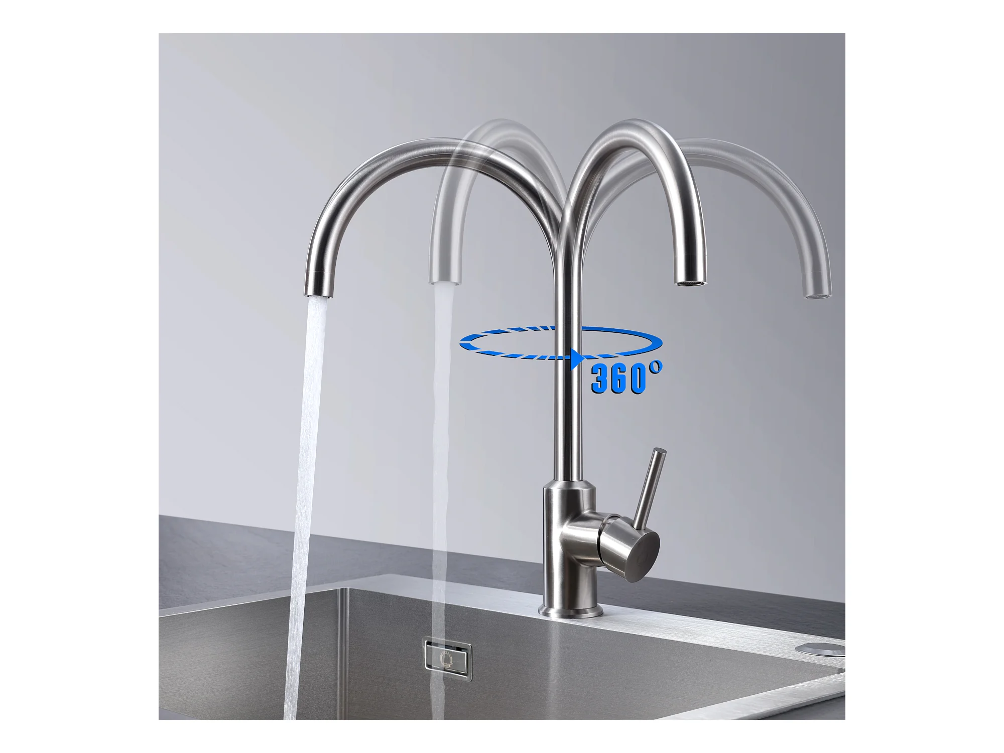 Cecipa max Mezclador de cocina con ducha extraíble Grifo de cocina con 2 chorros a elegir Grifería de acero cepillado de alta calidad, modelo EU
